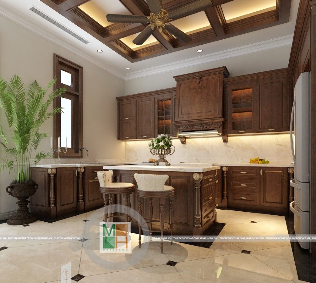 Biệt thự sang trọng sử dụng gỗ tự nhiên kết hợp phong cách tân cổ điển