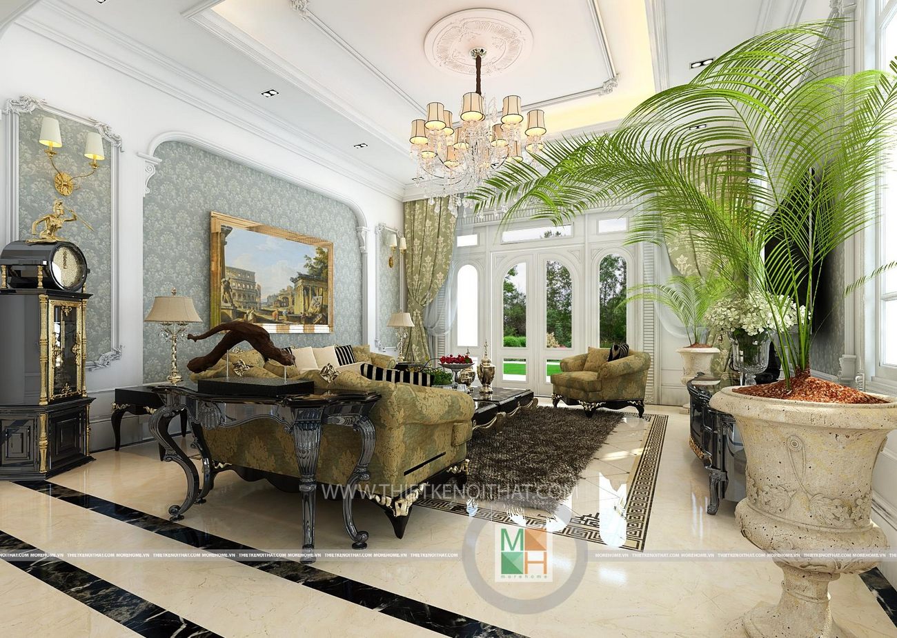 Thiết kế nội thất tân cổ điển, Thiết kế nội thất biệt thự tân cổ điển