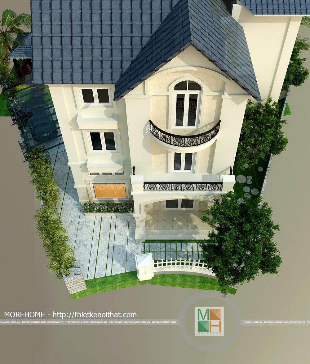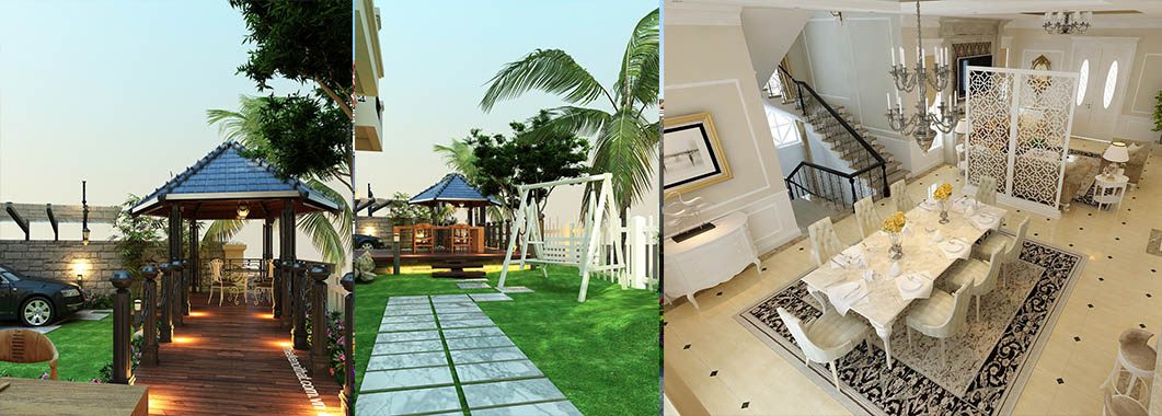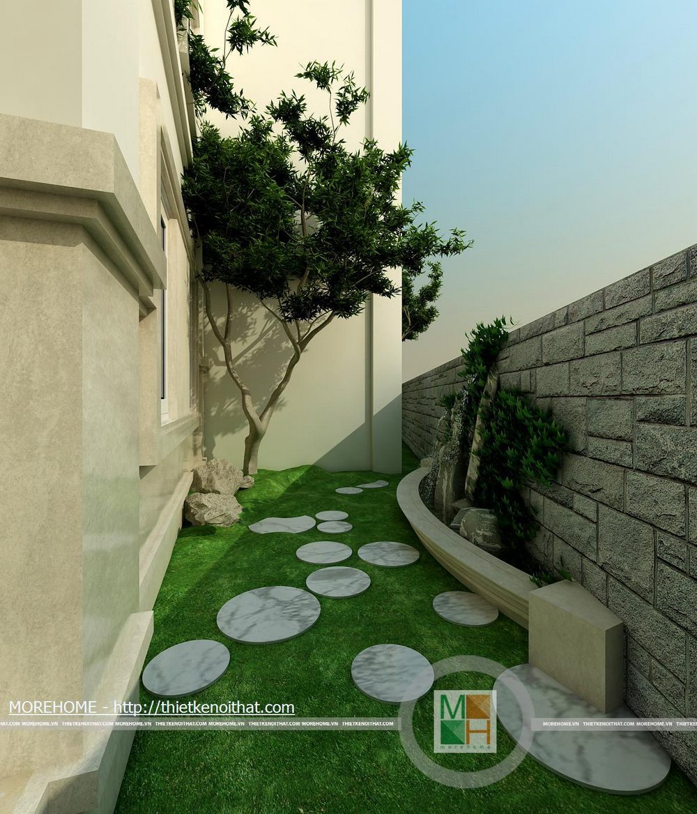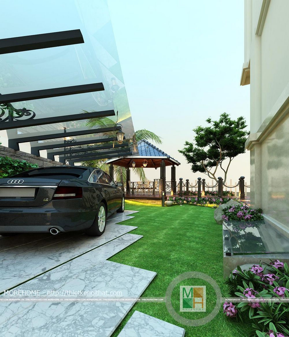 Không gian của căn biệt thự được chia làm 2 bộ phận chính là sân vườn phục vụ cho nhu cầu giải trí, thư giãn và khối kiến trúc chính của căn nhà.
