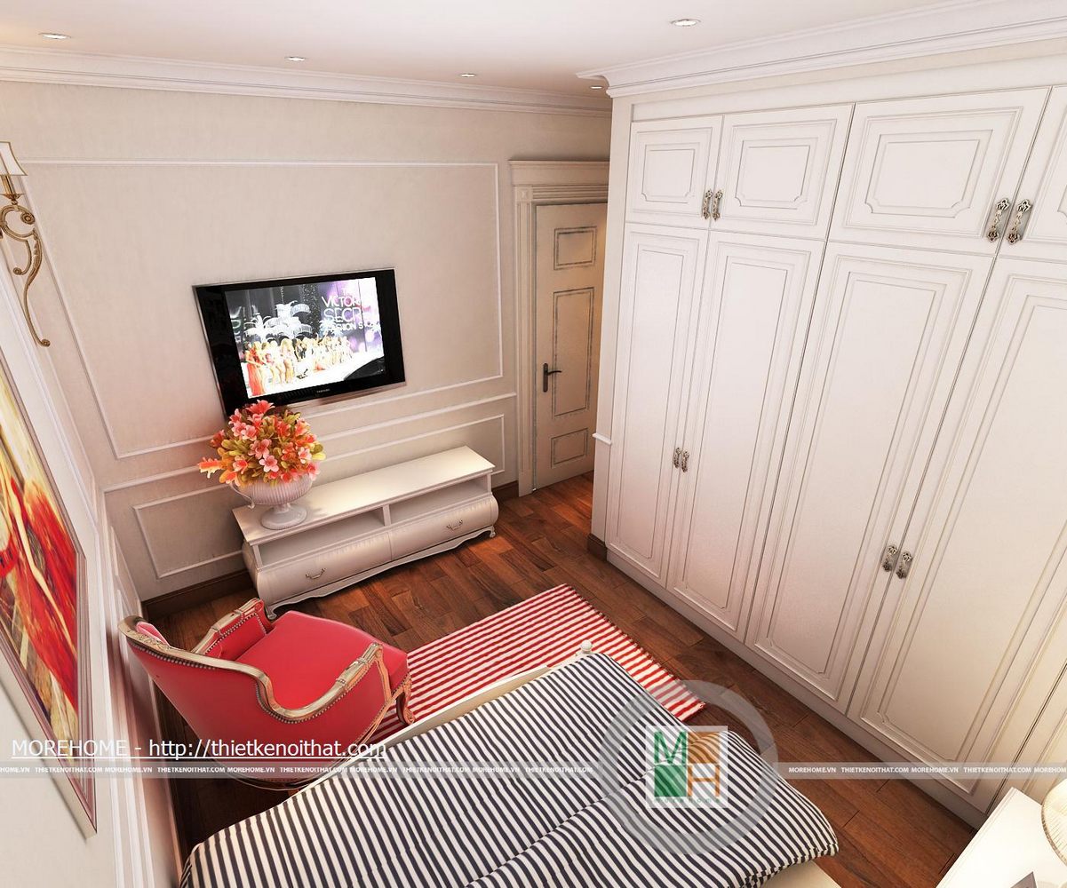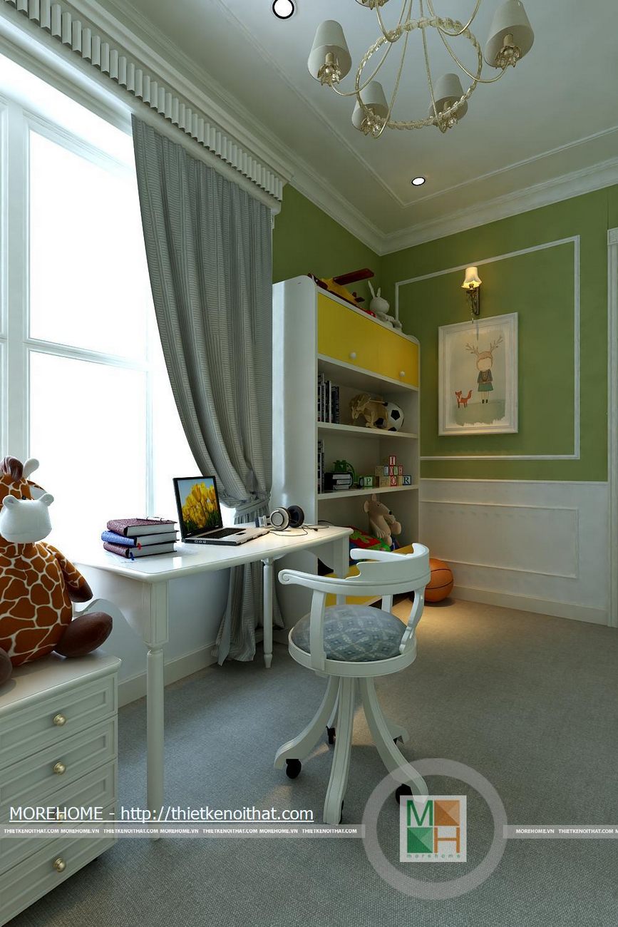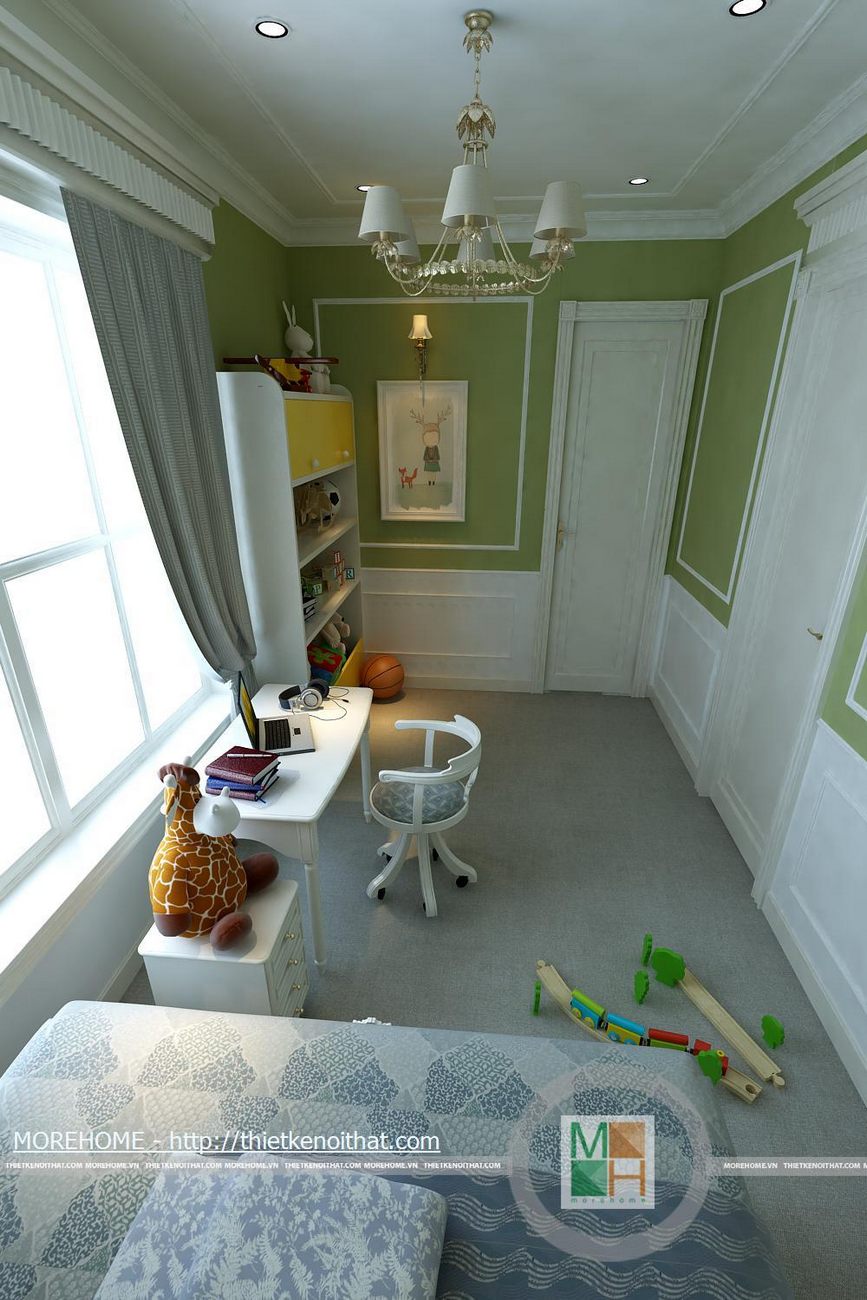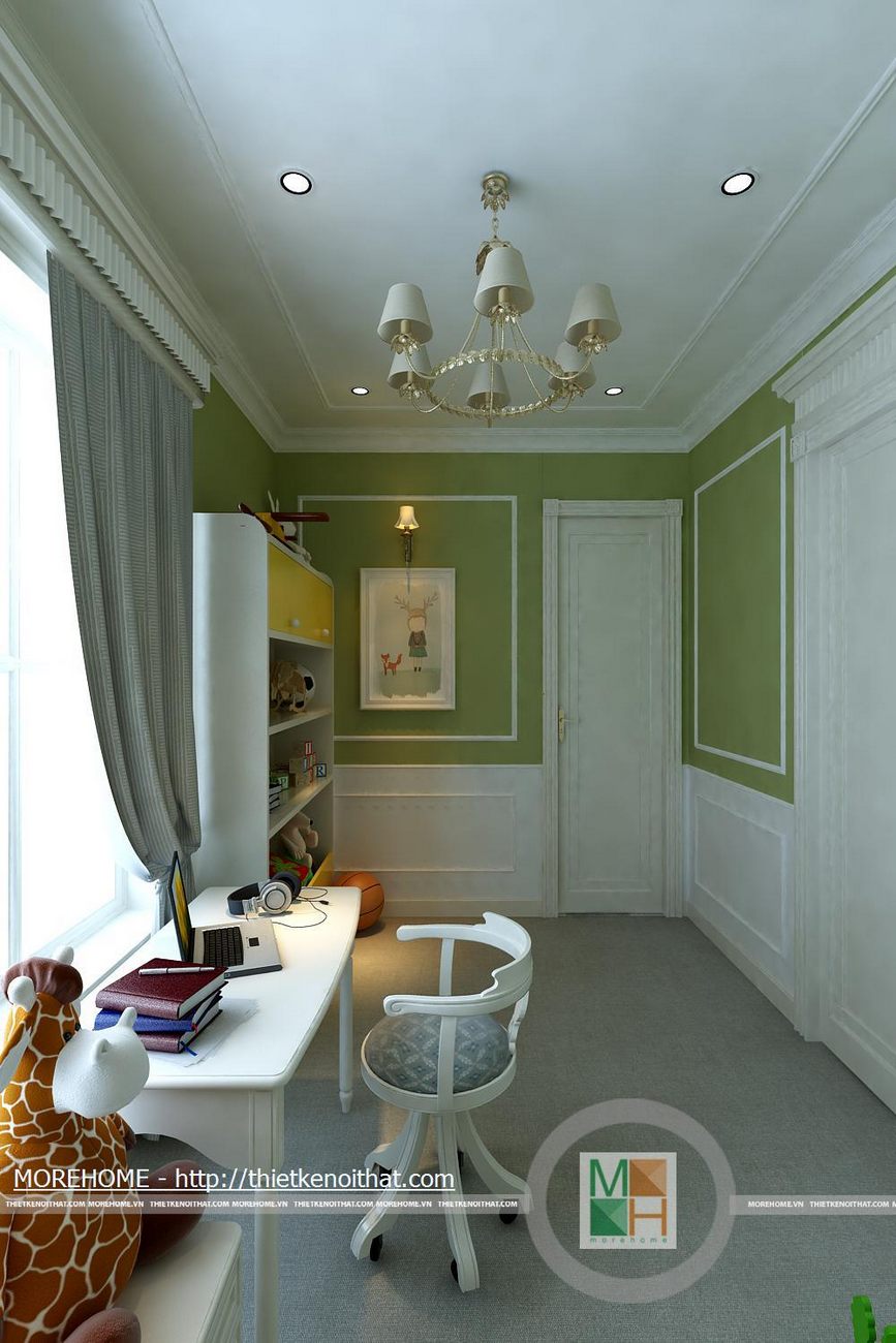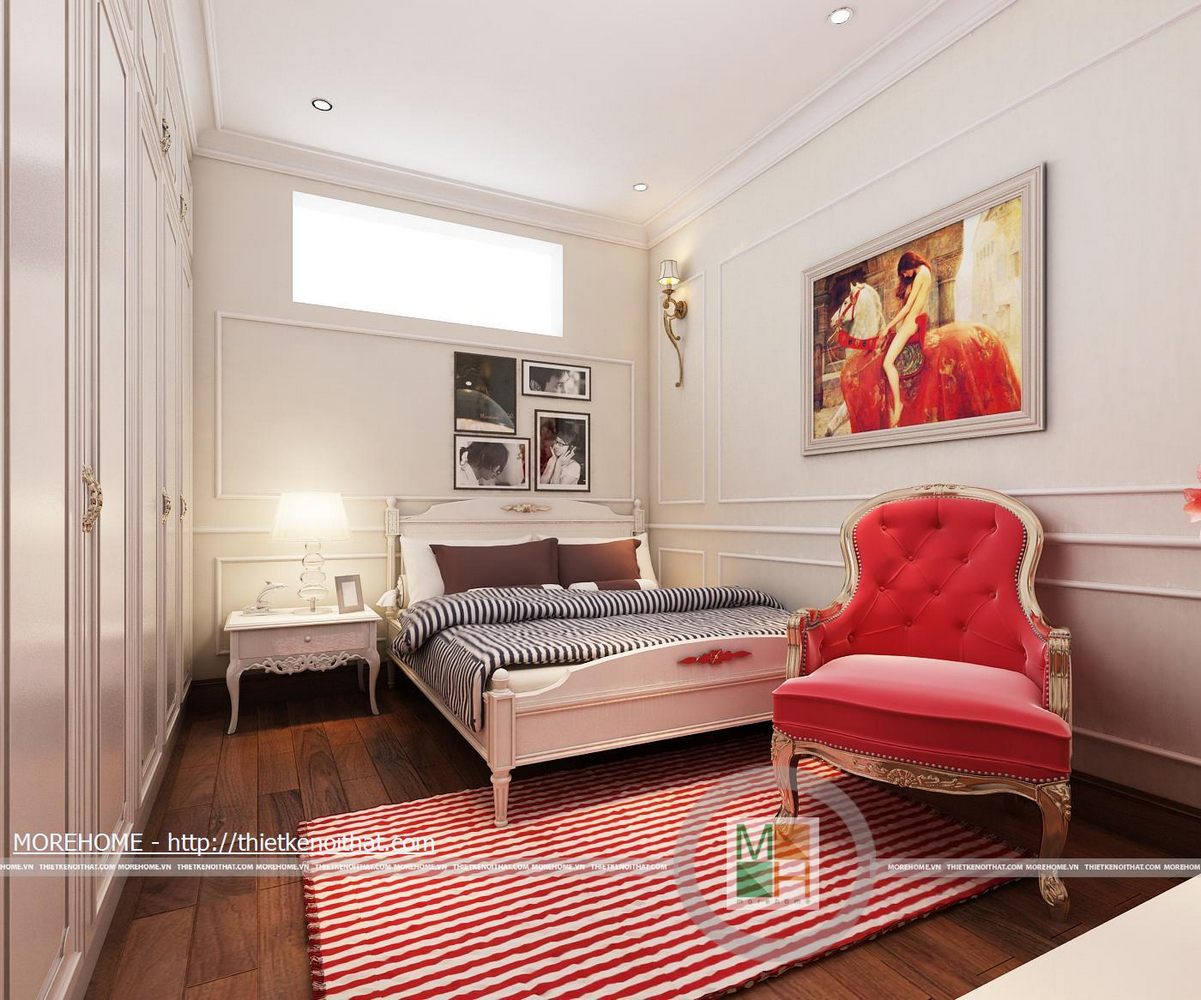 Tổng thể ngôi nhà có năm phòng ngủ bao gồm phòng ngủ con trai, phòng ngủ nhỏ, phòng ngủ ông bà, phòng ngủ bố mẹ và phòng ngủ khách. Phòng ngủ con trai được thiết kế nội thất hiện đại năng động phù hợp với lứa tuổi. Tủ đồ được kê sát tường tiết kiệm không gian cho căn phòng. Bàn học kê hướng ra cửa sổ đón ánh sáng. Bên bàn học bố trí một tủ kiêm kệ để đồ chơi, sách vở. Phòng ngủ nhỏ lấy màu trắng là gam màu chủ đạo, đan xen một số màu sắc nổi bật như đỏ, đen. Căn phòng được thiết kế đơn giản không cầu kì nhưng vẫn vô cùng hiện đại. Nội thất trong phòng được tối giản phù hợp với diện tích phòng. Phòng ngủ ông bà lấy phong cách cổ điển làm điểm nhấn, các đường nét trên nội thất phòng đều mềm mại, tinh tế. Cả căn phòng là sự hài hòa về màu sắc cũng như cách bố trí nội thất. Cửa lớn mở ra ban công để gia chủ có thể hít thở bầu không khí trong lành bên ngoài trời vào buổi sáng. WC của phòng ngủ ông bà cũng được trang bị khá là tiện nghi đầy đủ, không gian thoải mái tạo cho ông bà. Sự hiện đại của căn nhà còn được thể hiện ở phòng ngủ của khách. Thiết kế đơn giản nhưng vẫn vô cùng lịch sự và trang nhã, phòng ngủ này tạo cho khách một không gian thoải mái và thân thiện. Diện tích phòng rộng, bên giường ngủ kê một bộ bàn ghế nhỏ để khách có thể uống cá phê hoặc đọc sách vào buổi sáng. Đối diện giường ngủ là một kệ để sách cùng vật dụng trang trí và một TV. Toàn bộ ánh sáng trong phòng kết hợp với màu sơn tường tạo cho phòng ngủ này một sự ấm cũng và thân thiện.