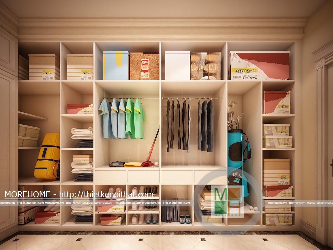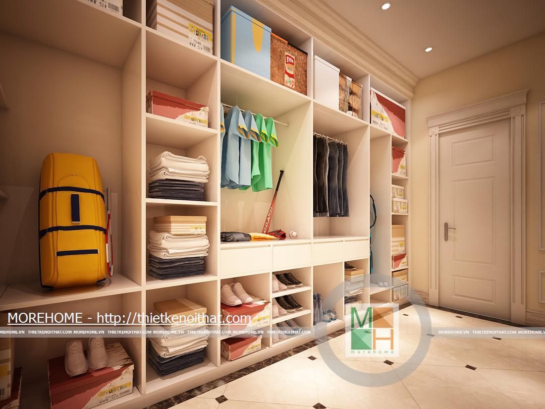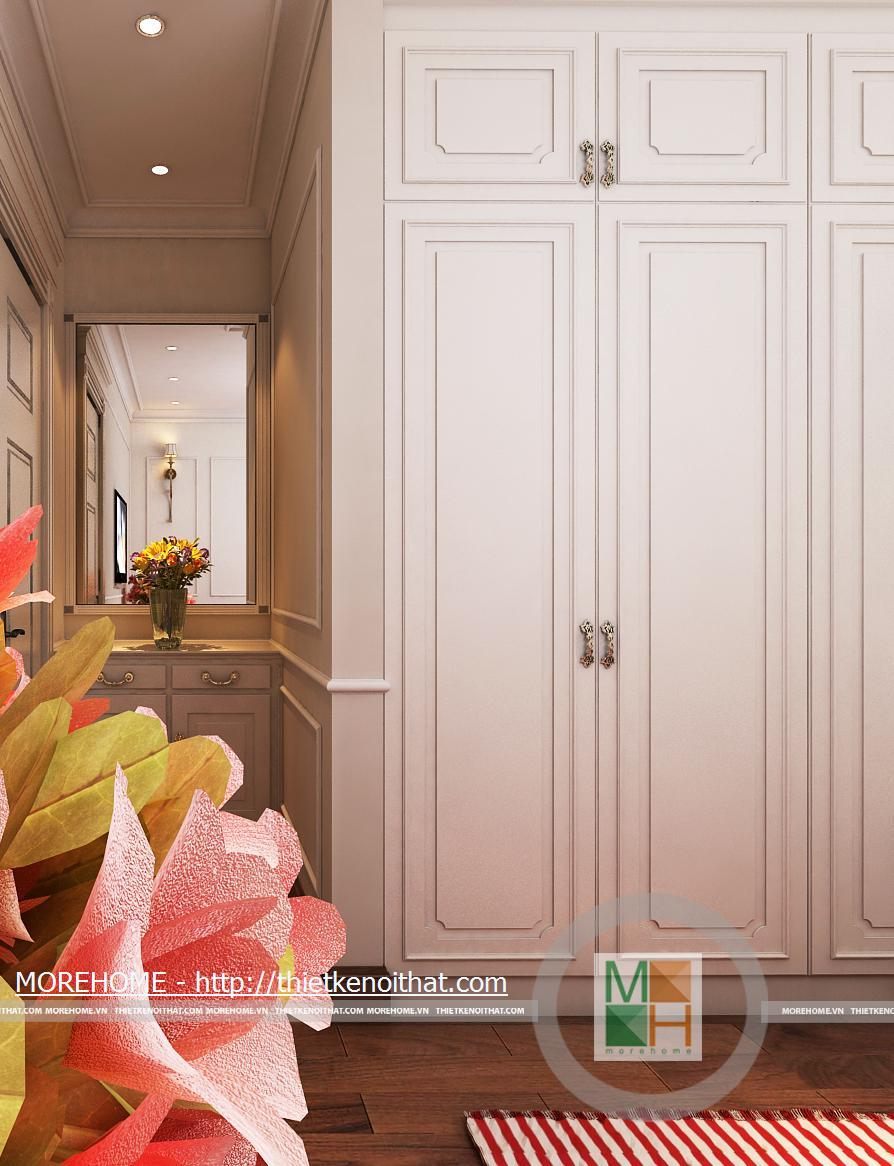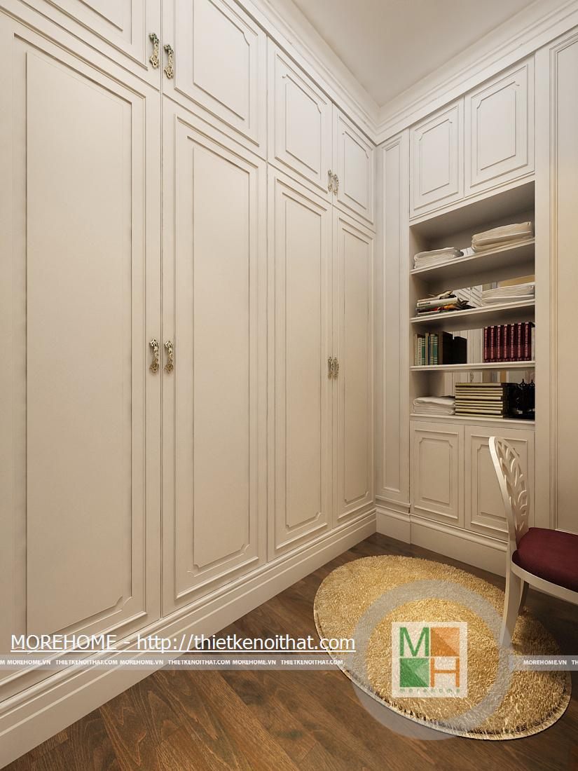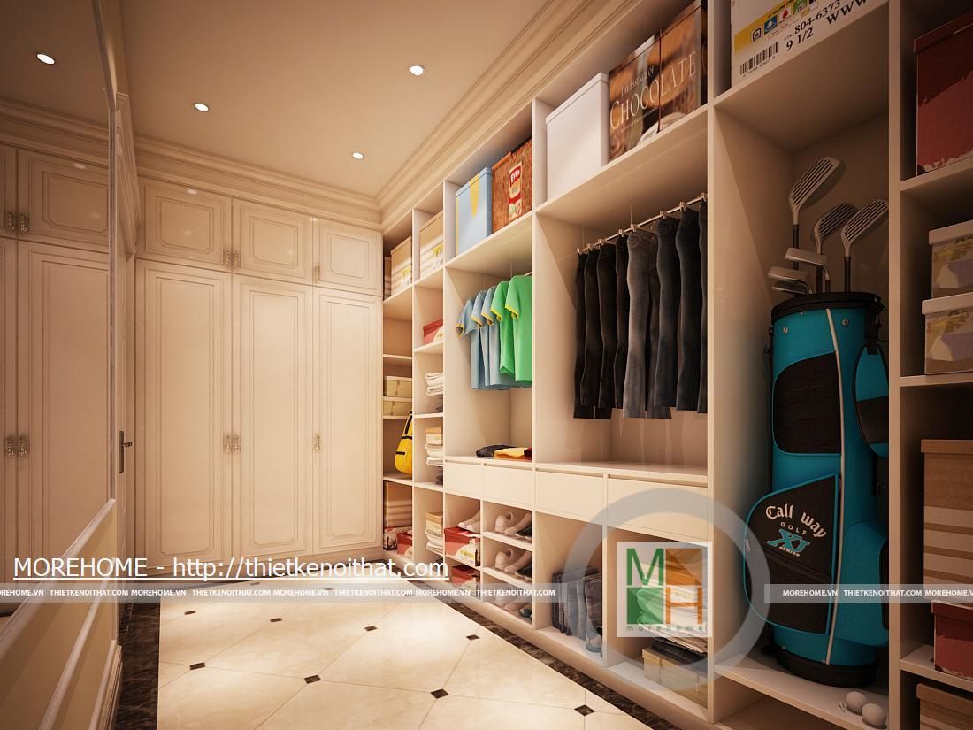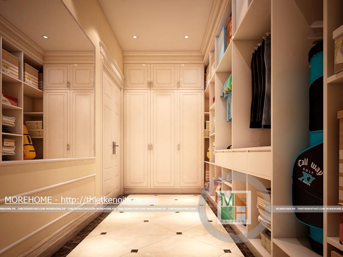 Phòng thay đồ với một tủ lớn có thể chứa nhiều đồ đạc vật dụng. Đối diện với tủ là một chiếc gương lớn phục vụ nhu cầu của gia chủ.