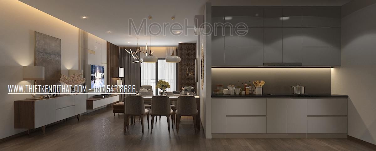 Căn hộ chung cư này được thiết kế theo phong cách hiện đại trẻ trung, mới mẻ với màu sắc, đồ nội thất hiện đại mang lại cho gia chủ một không gian sống tiện nghi nhất. Các bạn có nhu cầu thiết kế và thi công nội thất chung cư Ngoại Giao Đoàn vui lòng liên hệ công ty thiết kế nội thất MOREHOME: 0975438686 nhé.