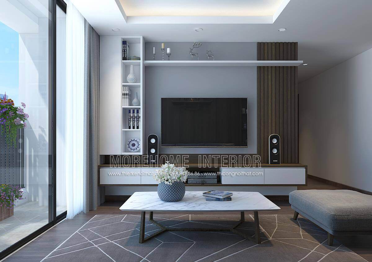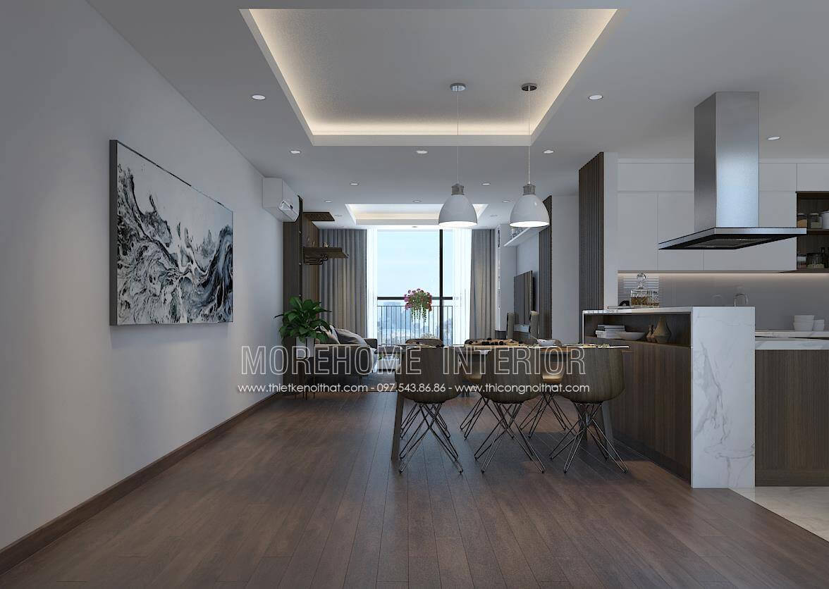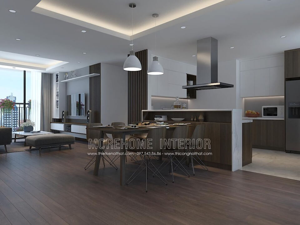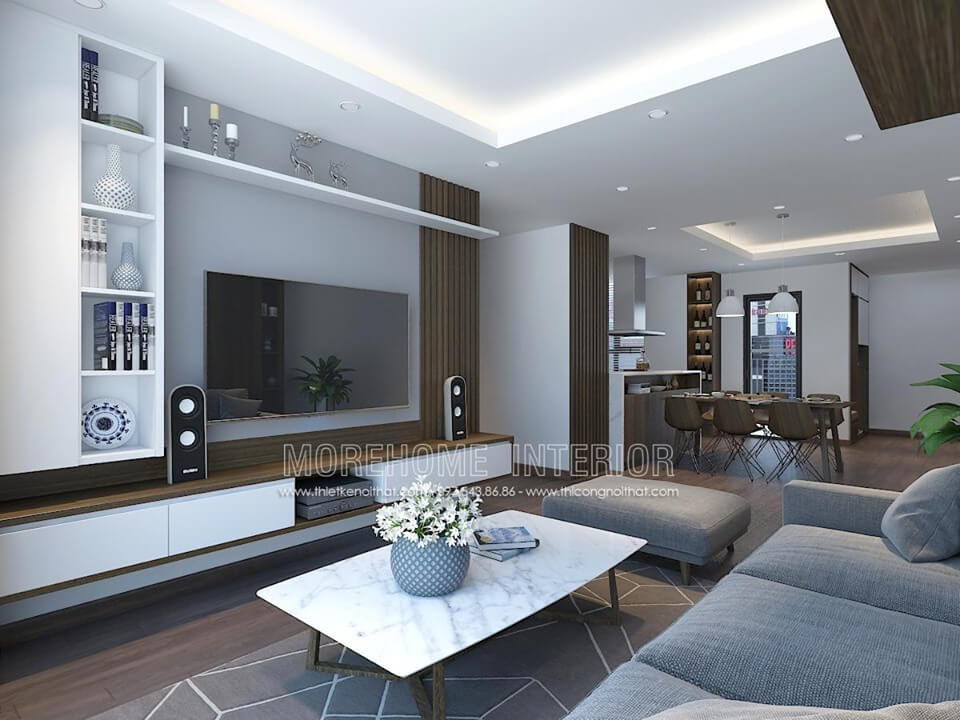 Thiết kế nội thất chung cư Ngoại Giao Đoàn gỗ công nghiệp