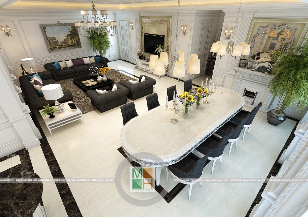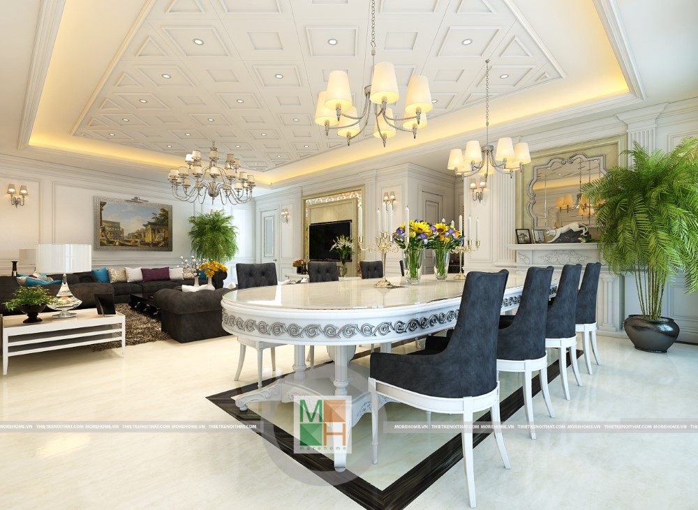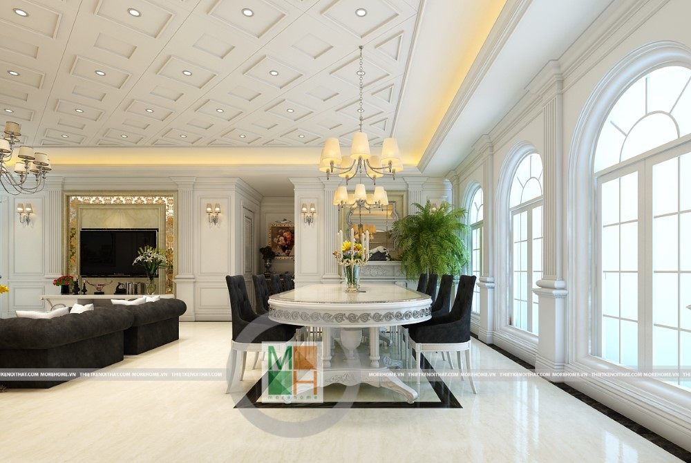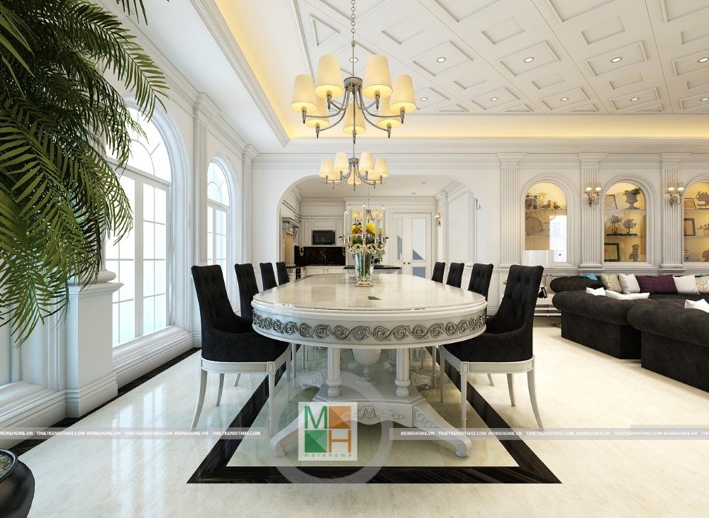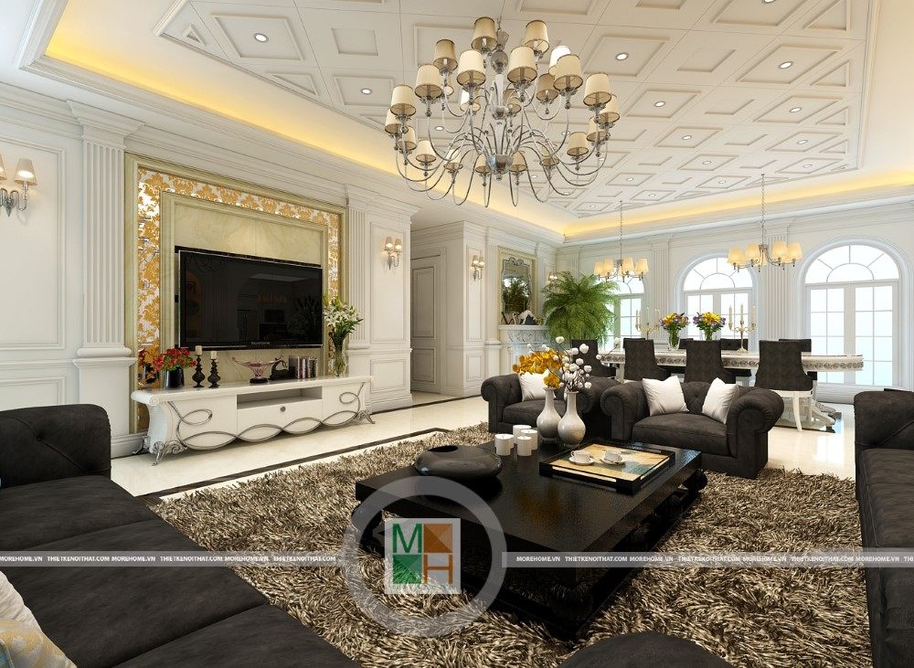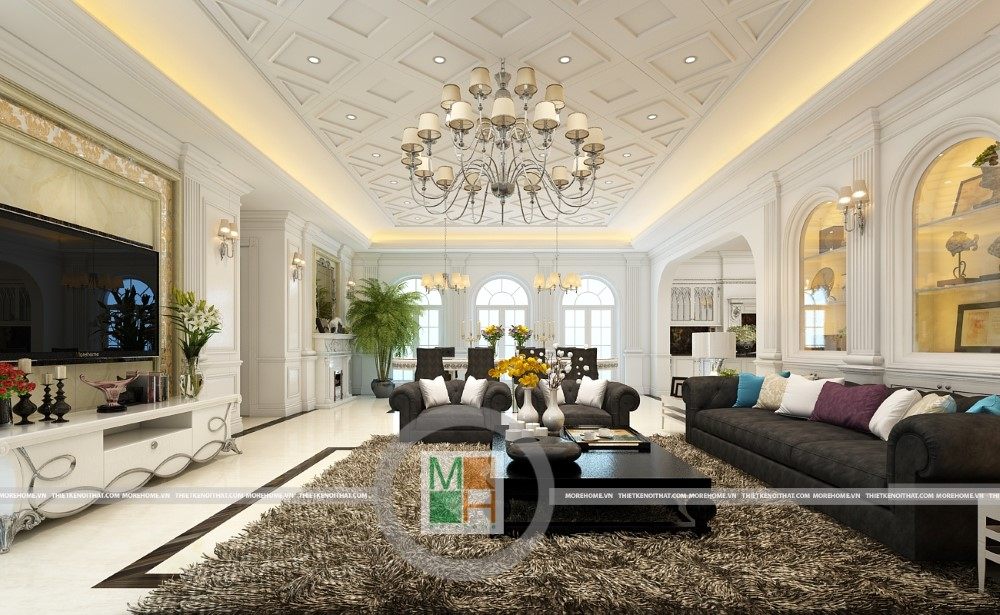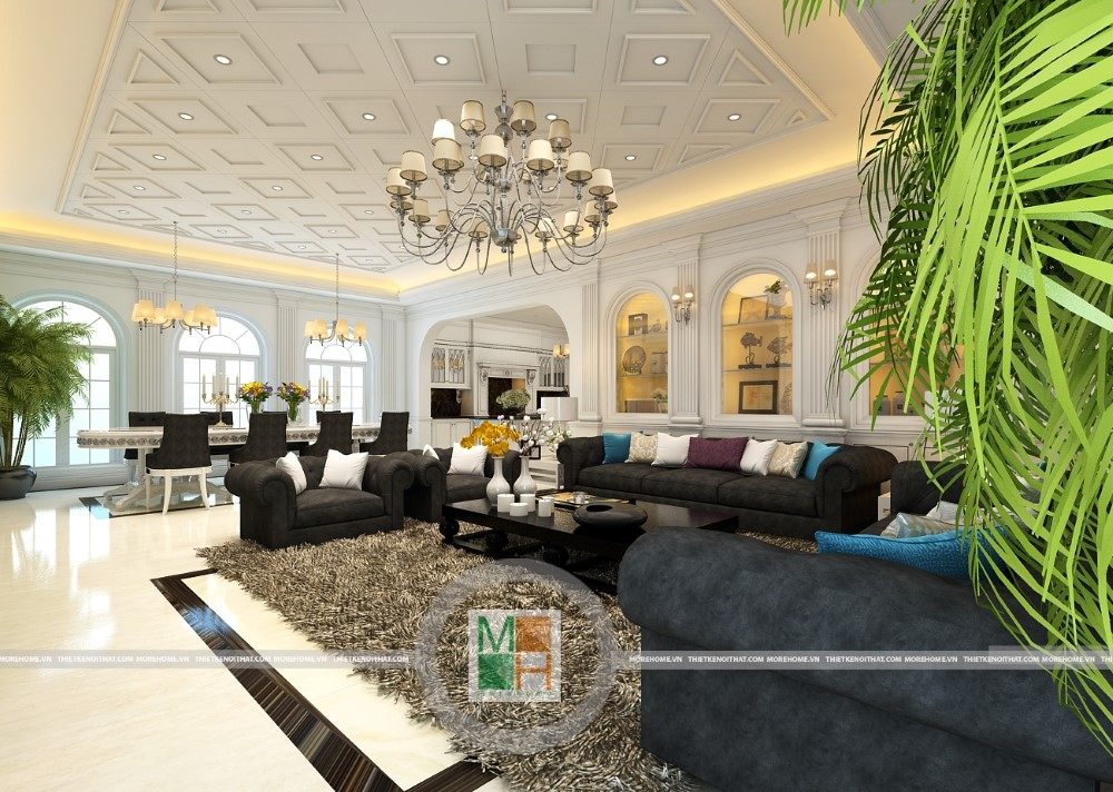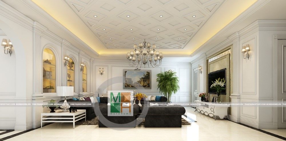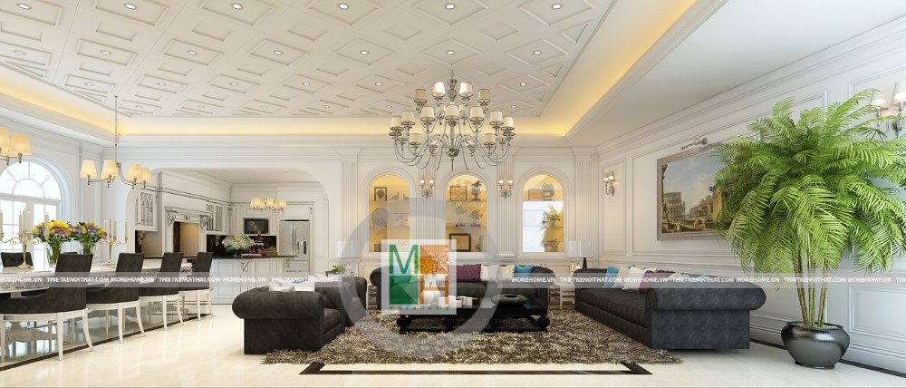 Sang trọng và đẳng cấp với không gian nội thất tân cổ điển cao cấp. Liên hệ ngay với MOREHOME để được tư vấn thiết kế ngôi nhà của bạn.