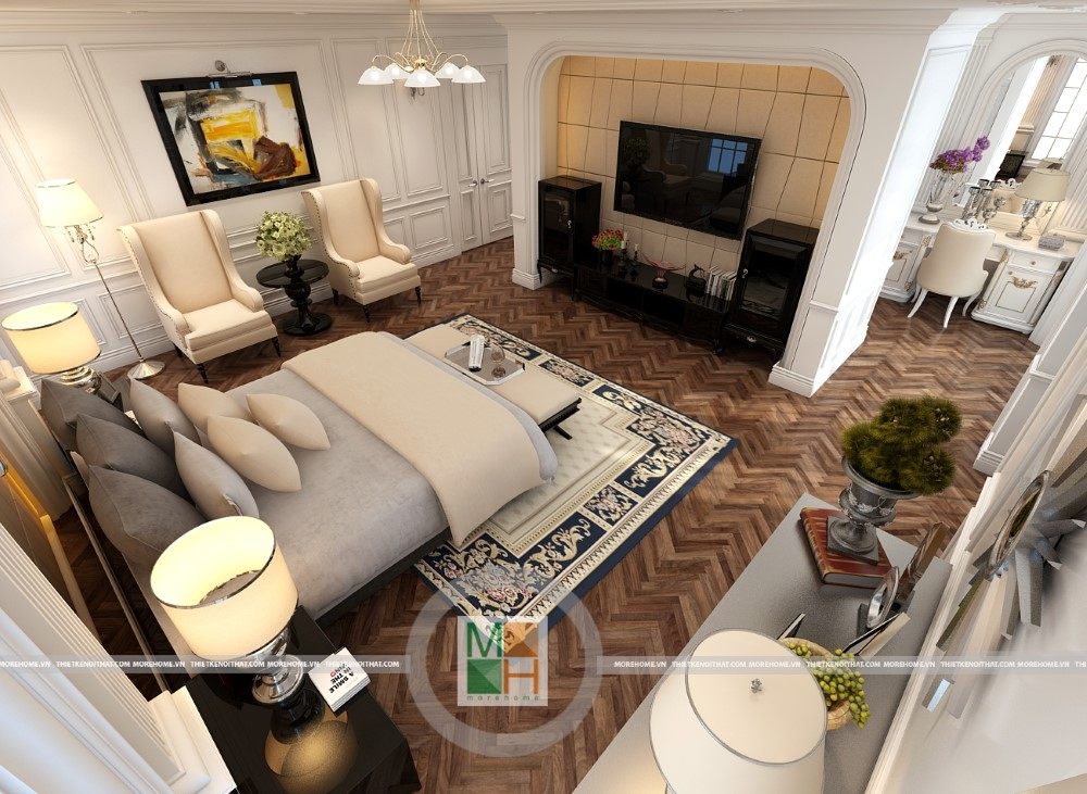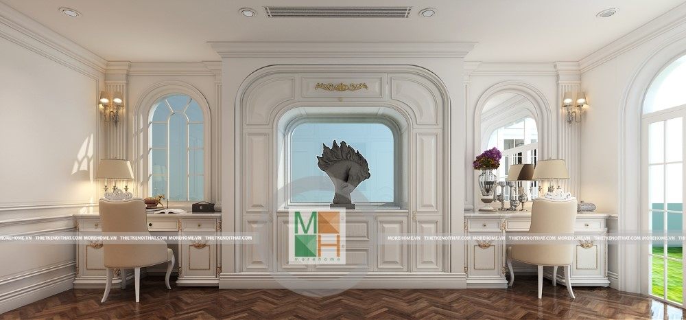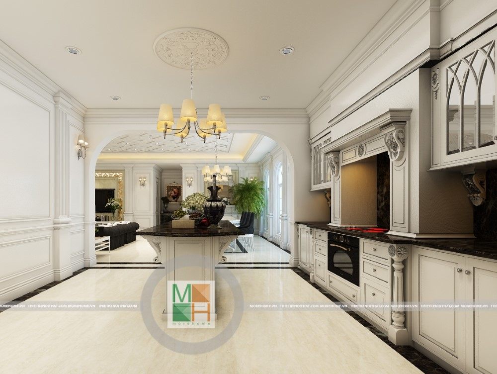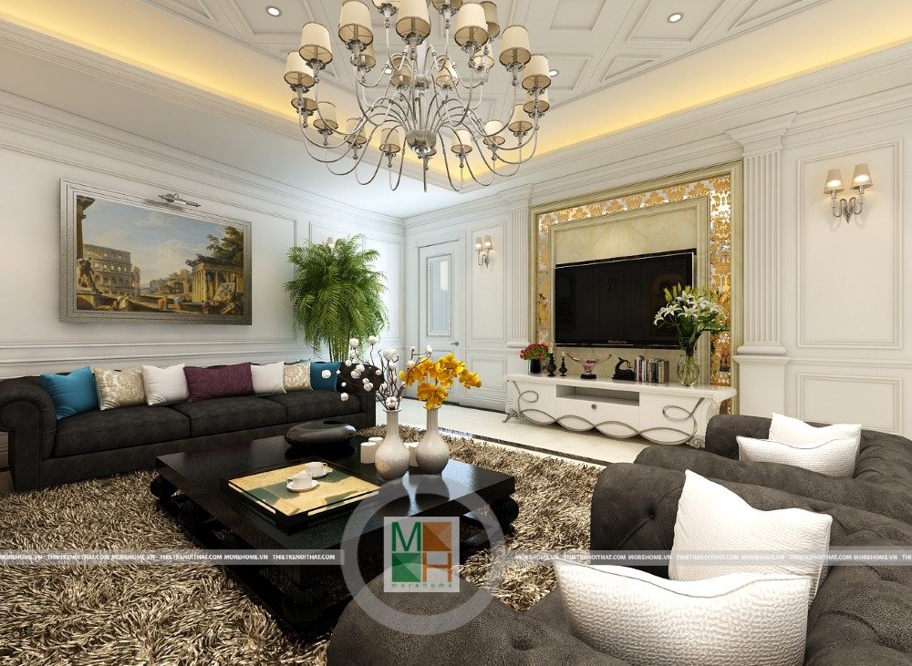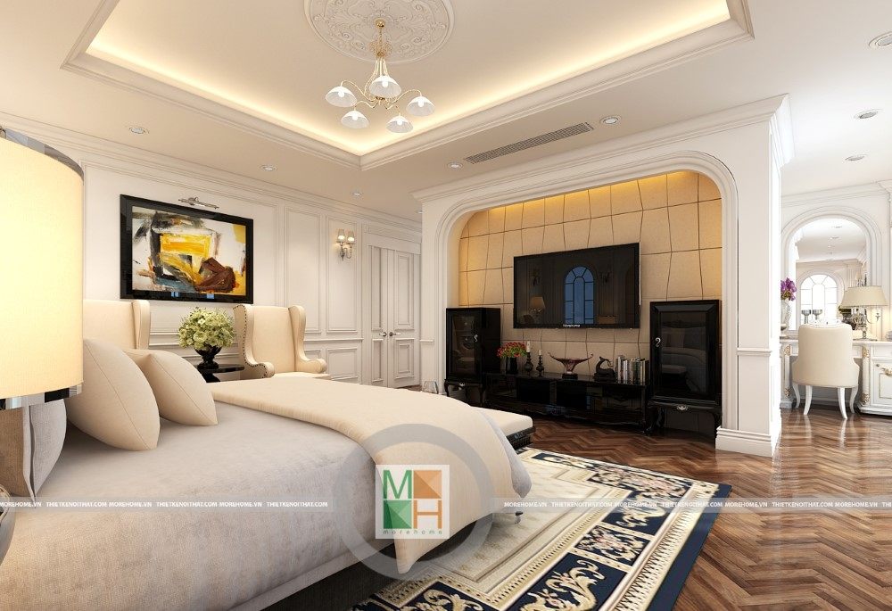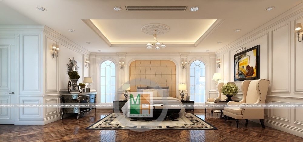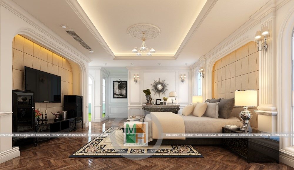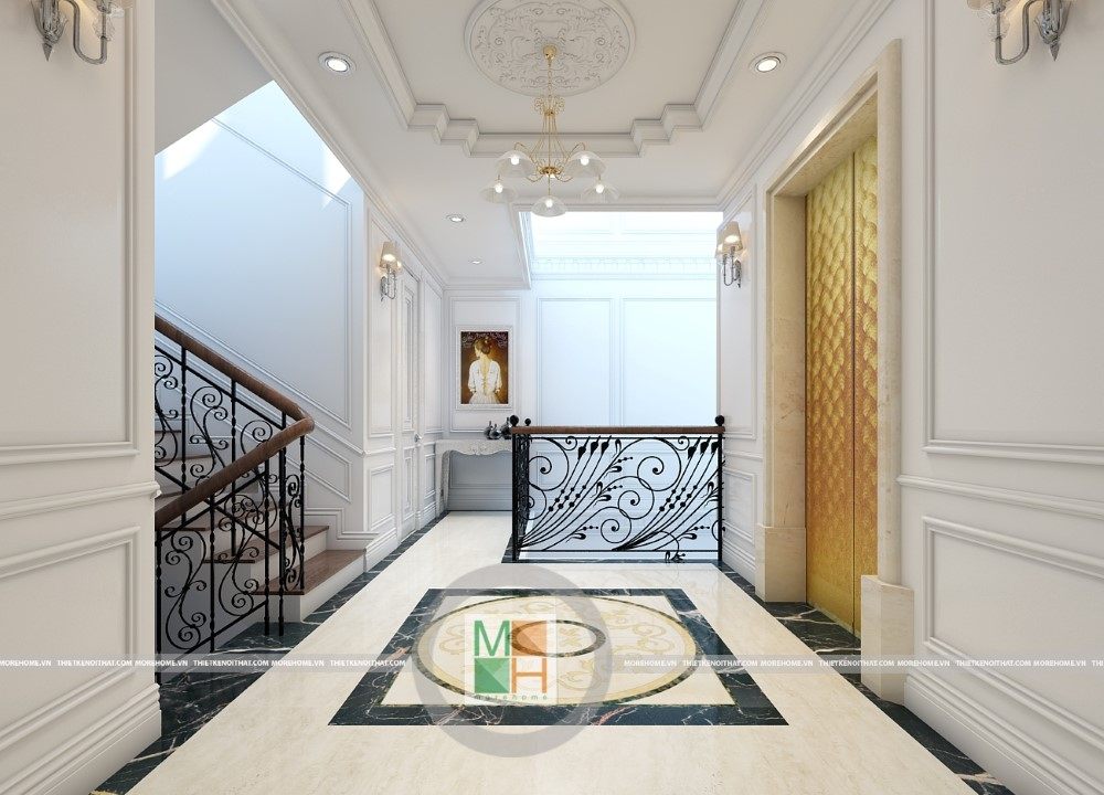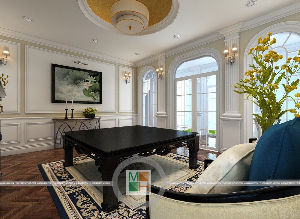 Sang trọng và đẳng cấp với không gian nội thất tân cổ điển cao cấp. Liên hệ ngay với MOREHOME để được tư vấn thiết kế ngôi nhà của bạn.