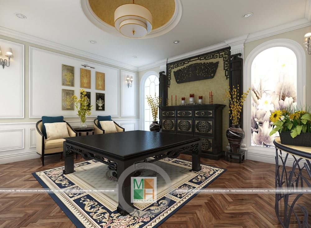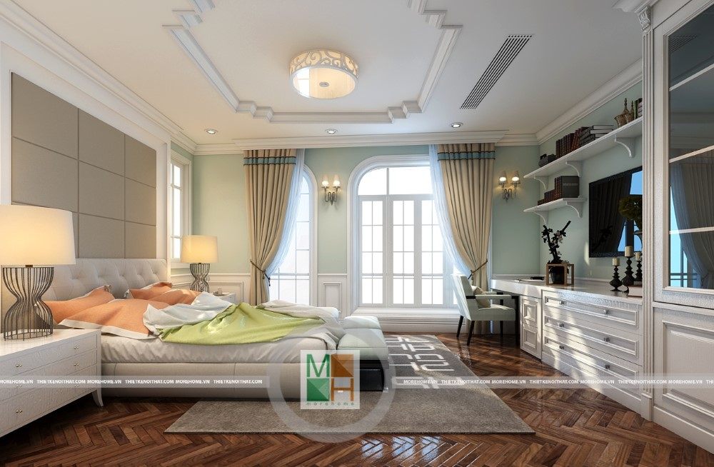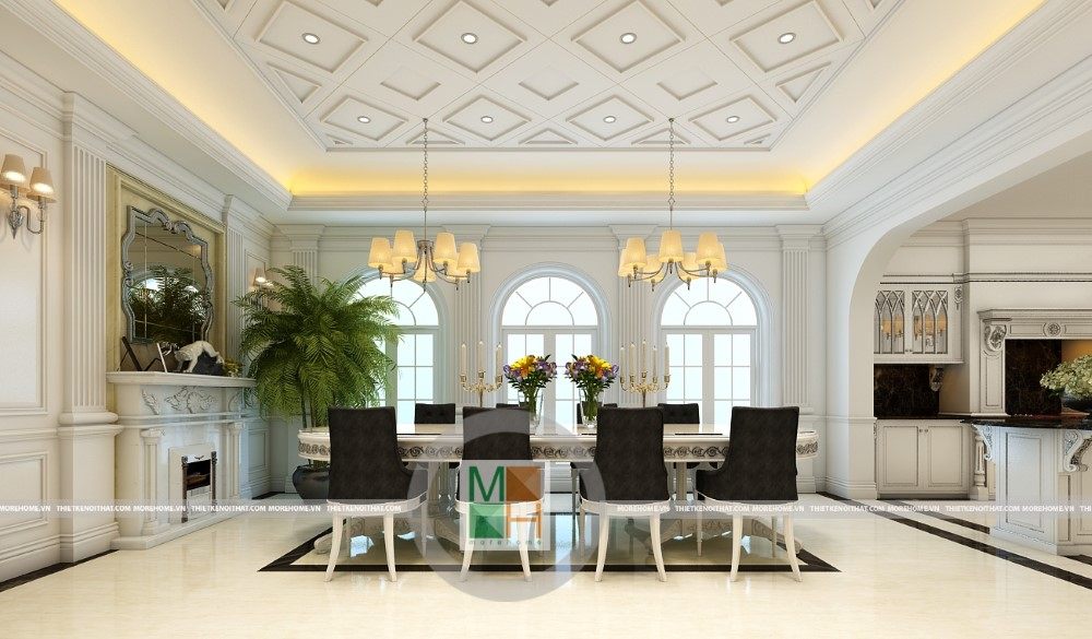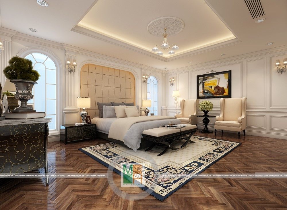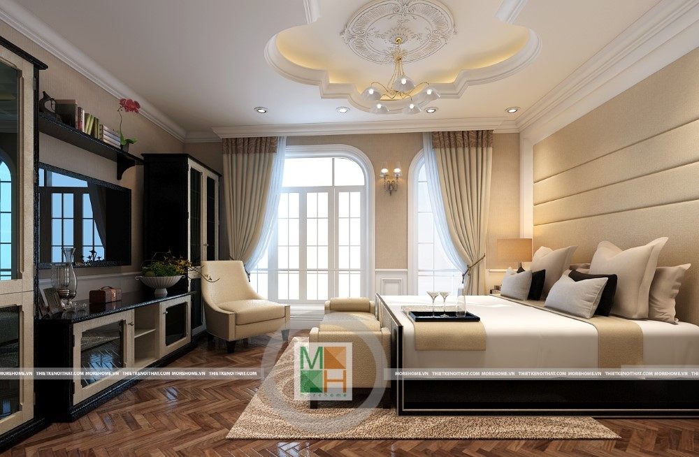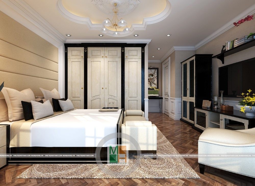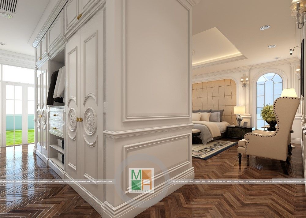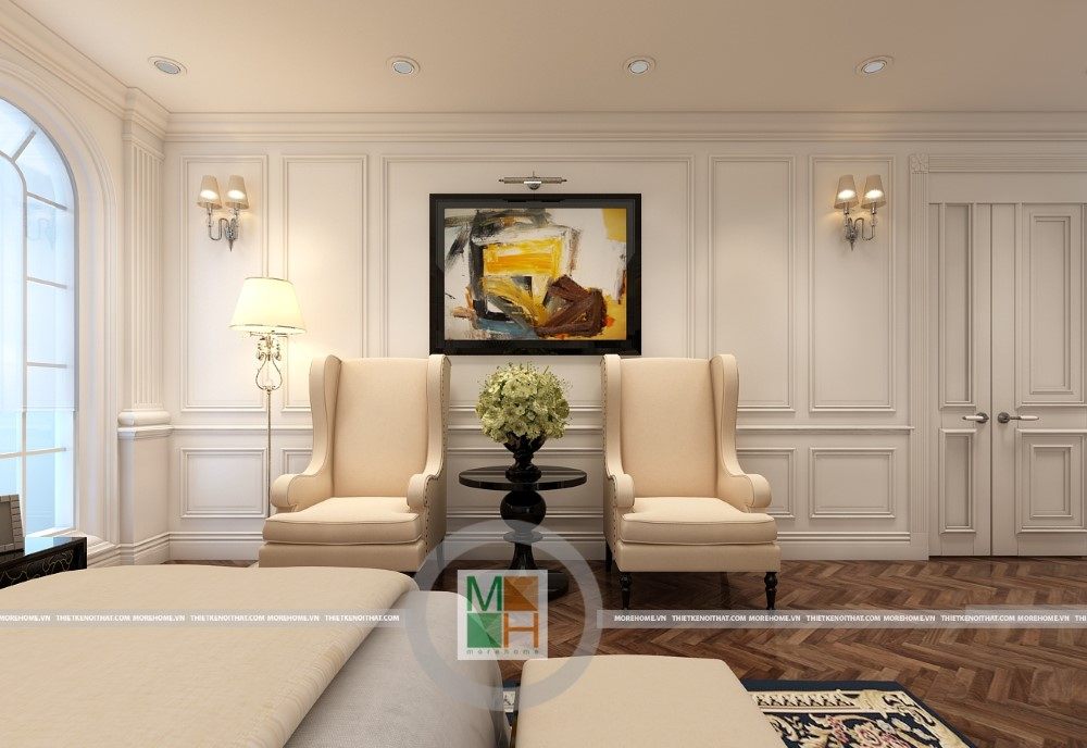 Sang trọng và đẳng cấp với không gian nội thất tân cổ điển cao cấp. Liên hệ ngay với MOREHOME để được tư vấn thiết kế ngôi nhà của bạn.