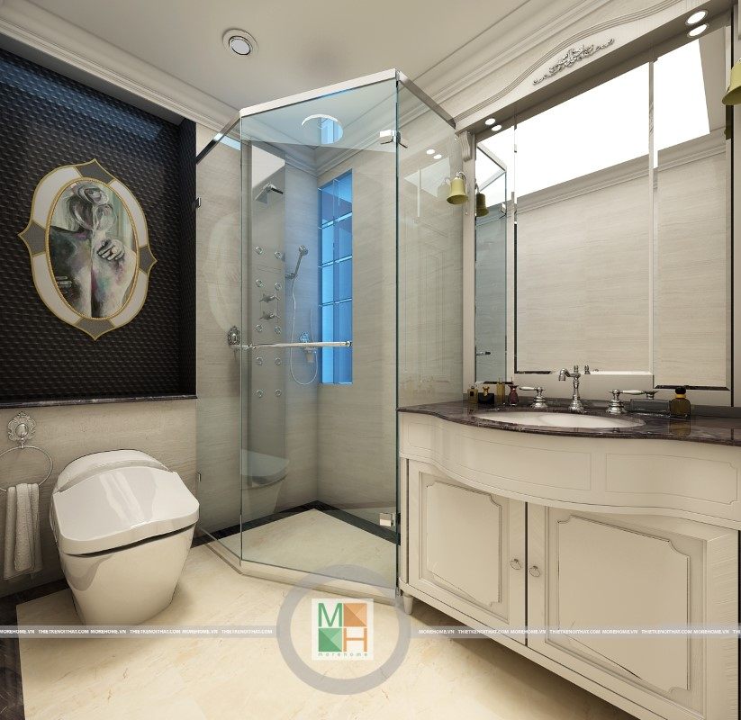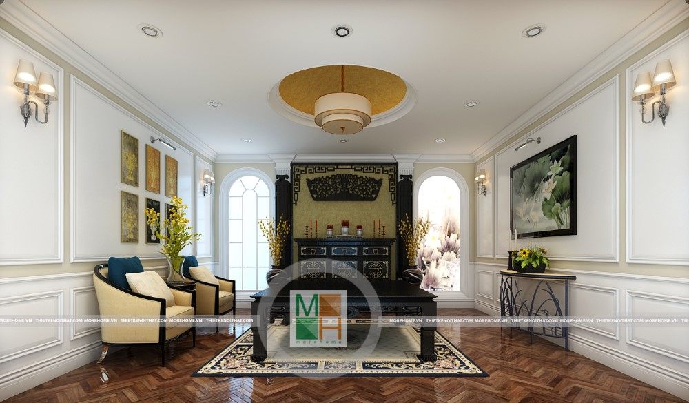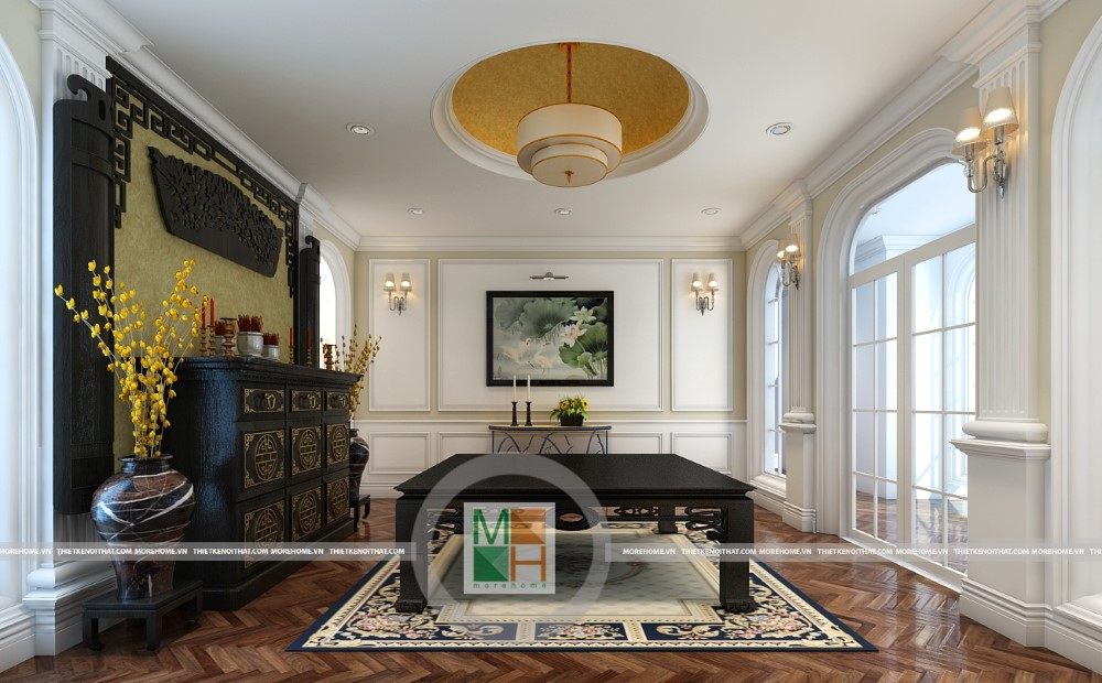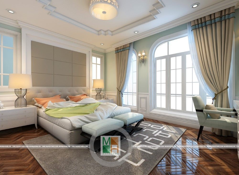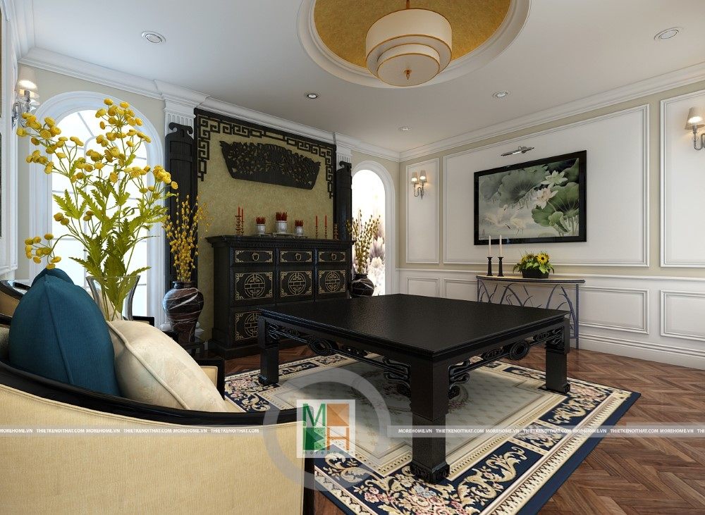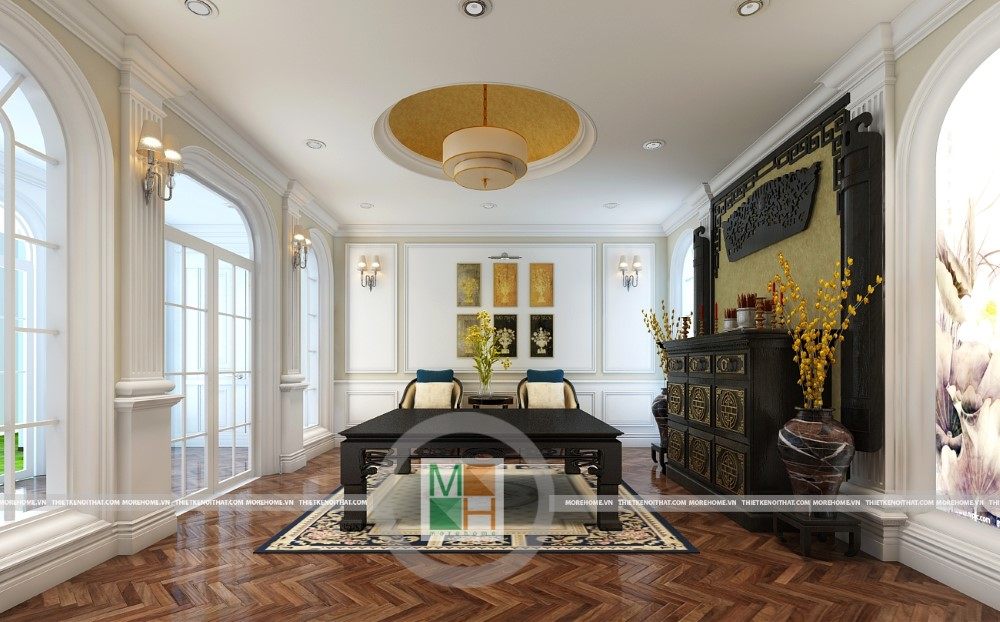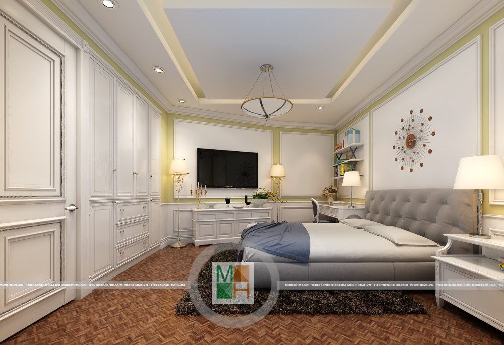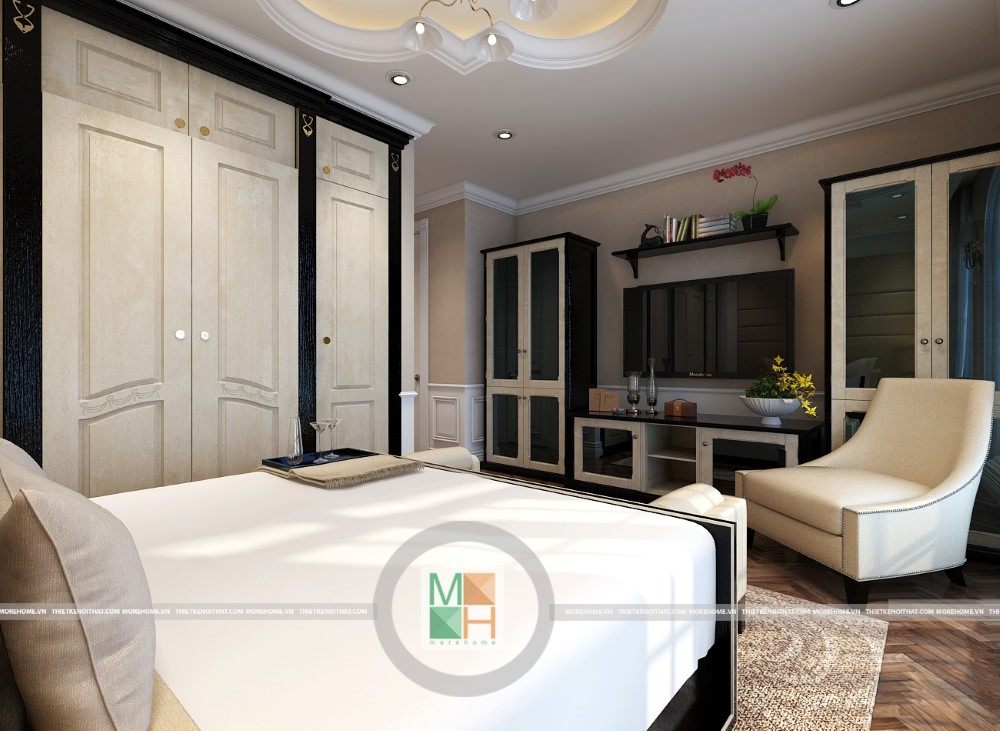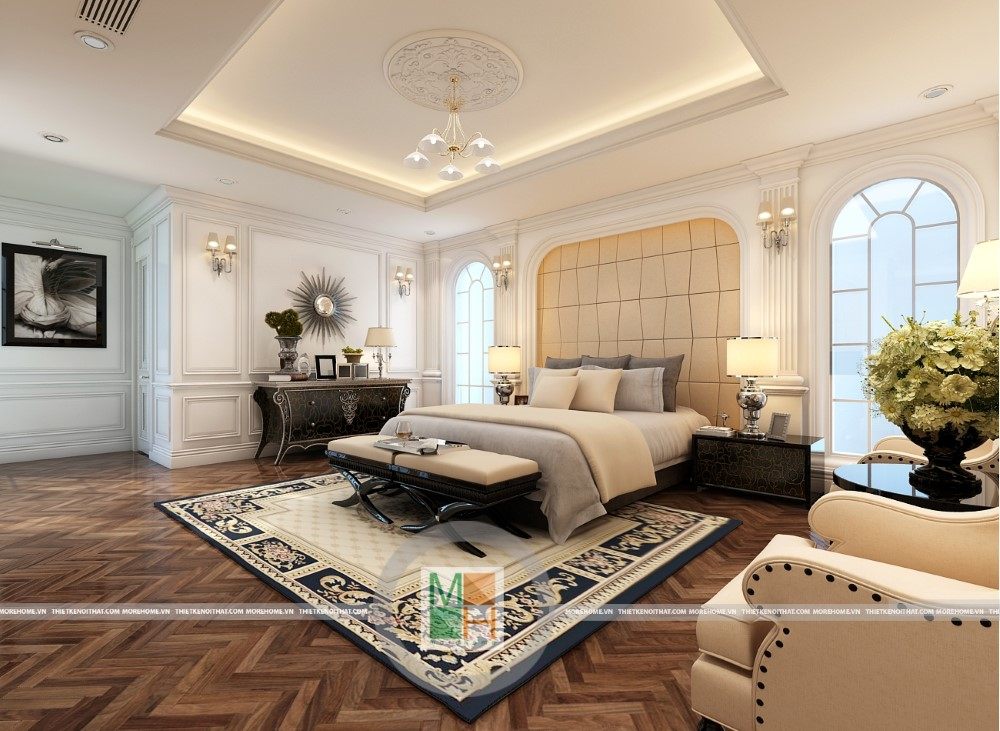 Sang trọng và đẳng cấp với không gian nội thất tân cổ điển cao cấp. Liên hệ ngay với MOREHOME để được tư vấn thiết kế ngôi nhà của bạn.