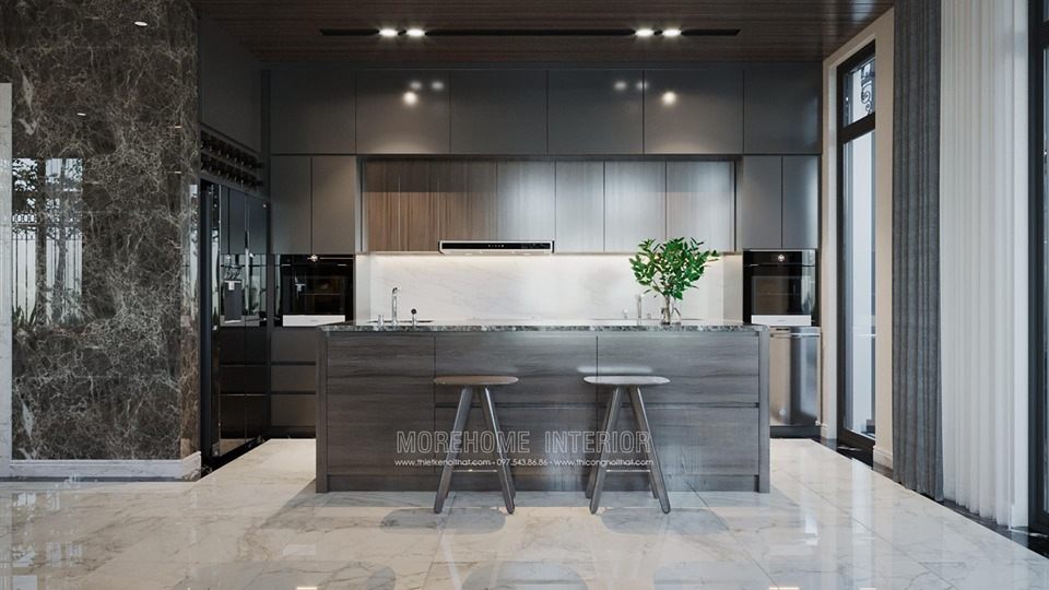 Nét đẹp quyến rũ từ màu sắc trung tính kết hợp với chất liệu gỗ công nghiệp cùng vật liệu đá nhân tạo đã tạo nên siêu phẩm không gian sống hoàn hảo. Liên hệ 0975438686 để được tư vấn và báo giá.