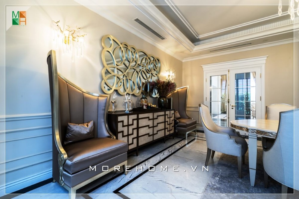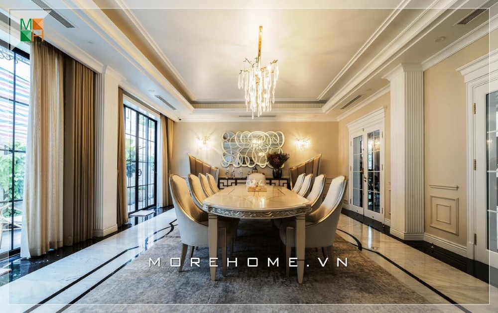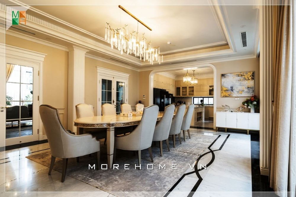 Morehome có nhiều kinh nghiệm trong việc thi công nội thất trọn gói biệt thự tại Vinhomes Hải Phòng. Công trình thi công nội thất biệt thự hoàn thiện theo phong cách tân cổ điển dưới đây của Morehome là một minh chứng.