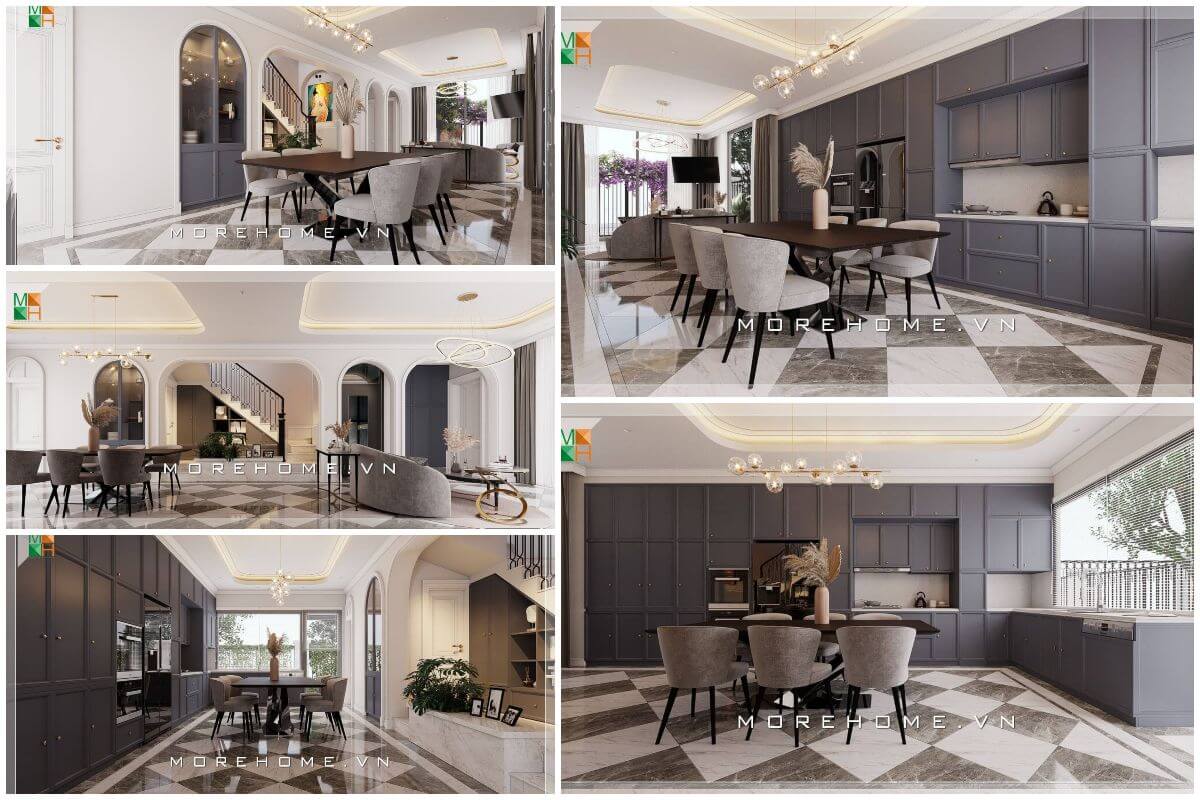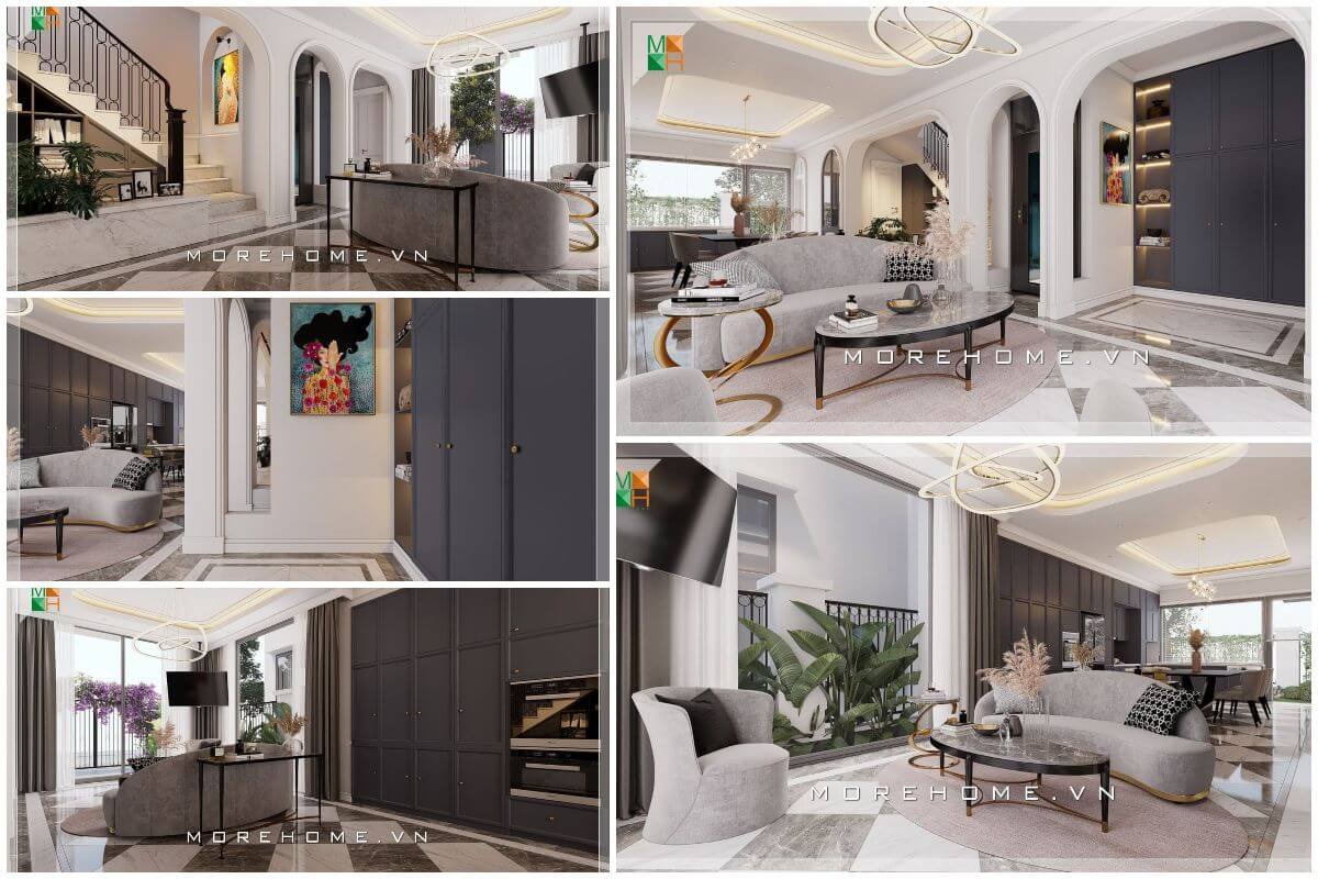 Thiết kế nội thất biệt thự Vinhomes cao cấp, sang trọng với phong cách tân cổ điển nhẹ nhàng