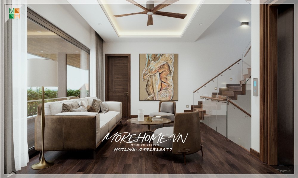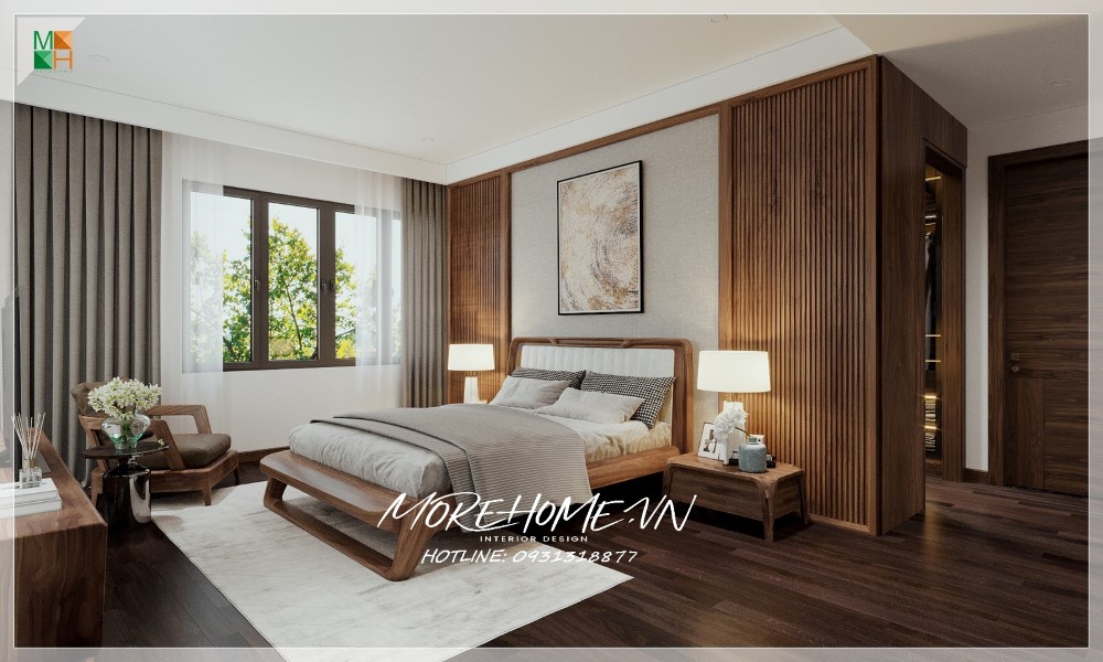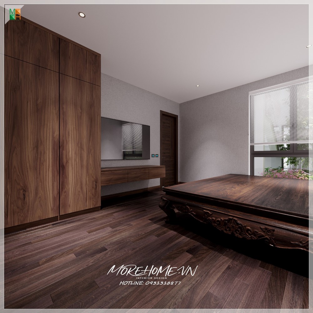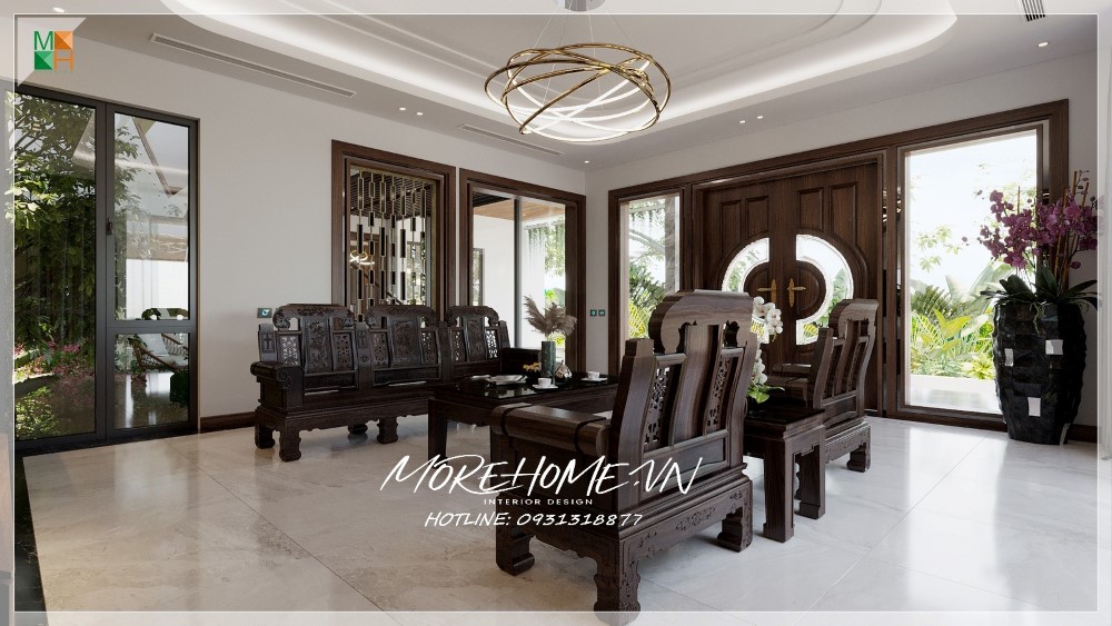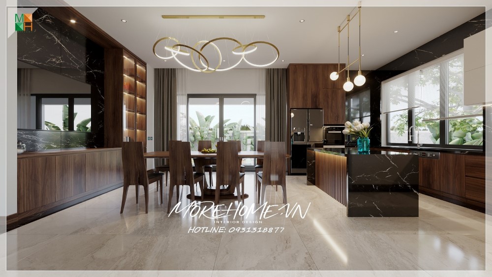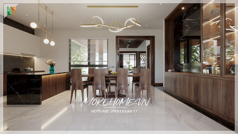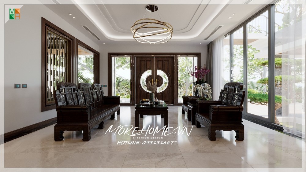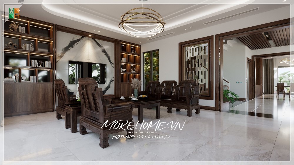 Thiết kế nội thất biệt thự Hà Tĩnh nổi bật gỗ óc chó sang trọng
