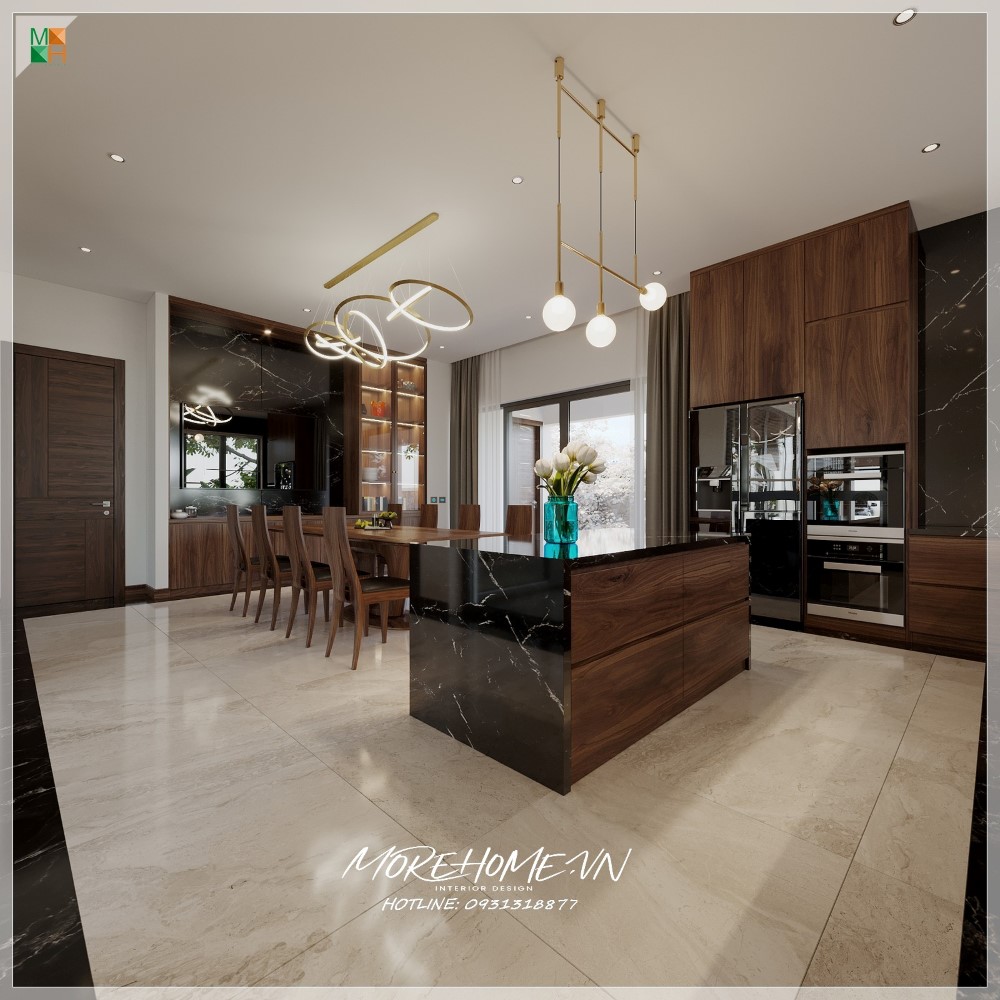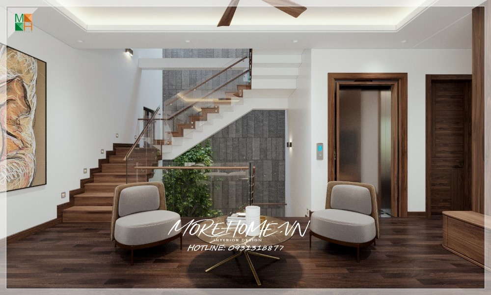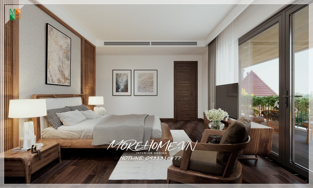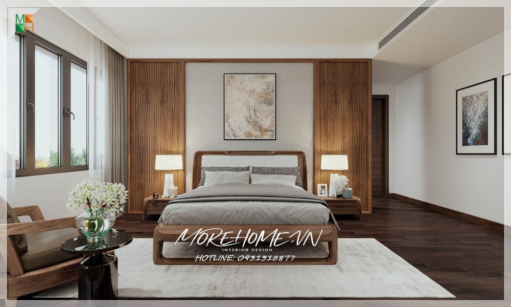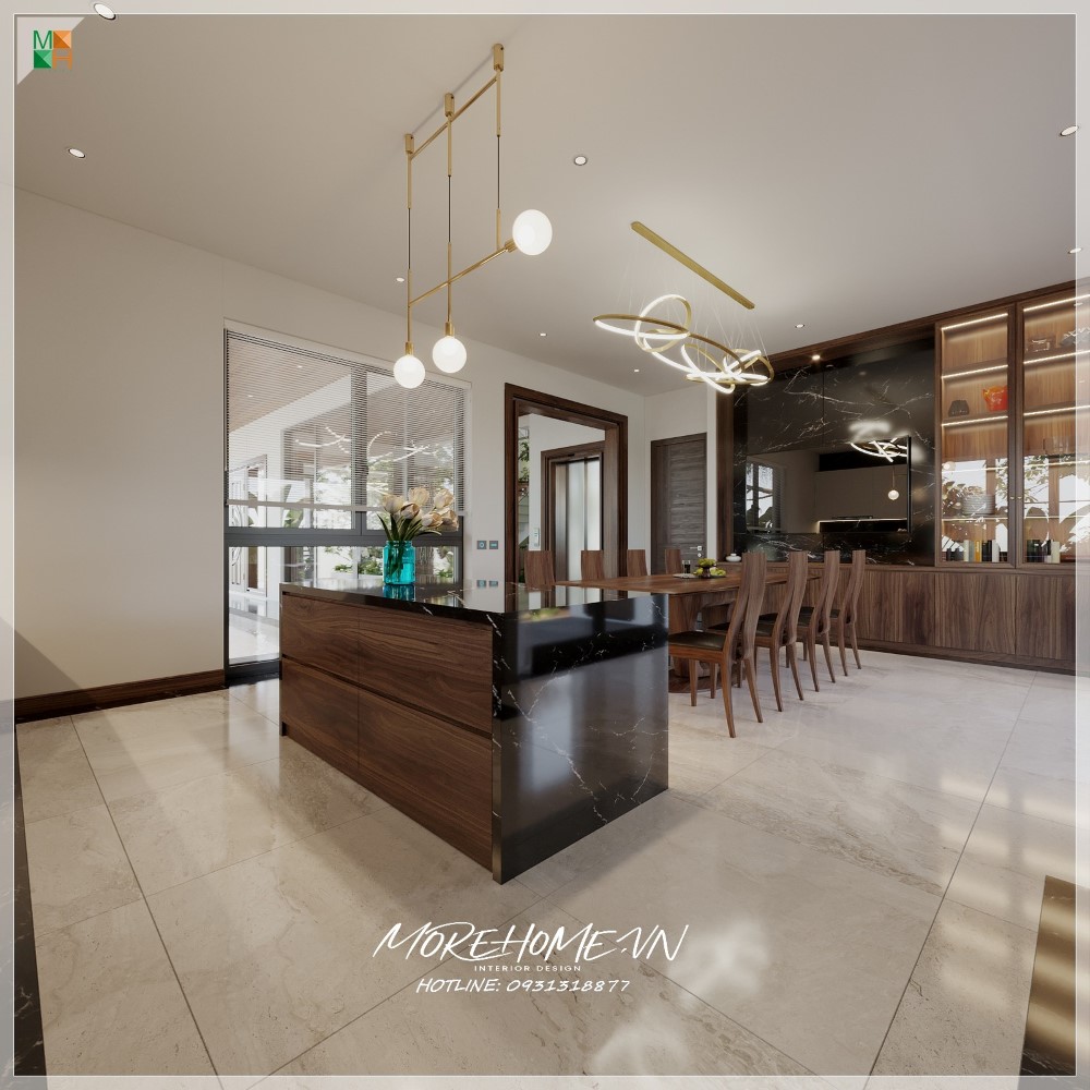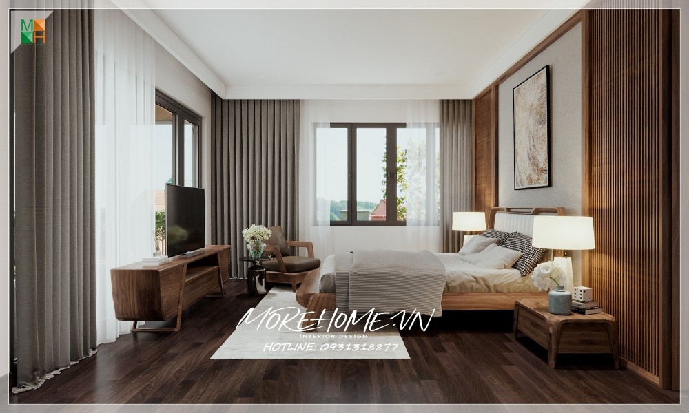 Thiết kế nội thất biệt thự Hà Tĩnh nổi bật gỗ óc chó sang trọng