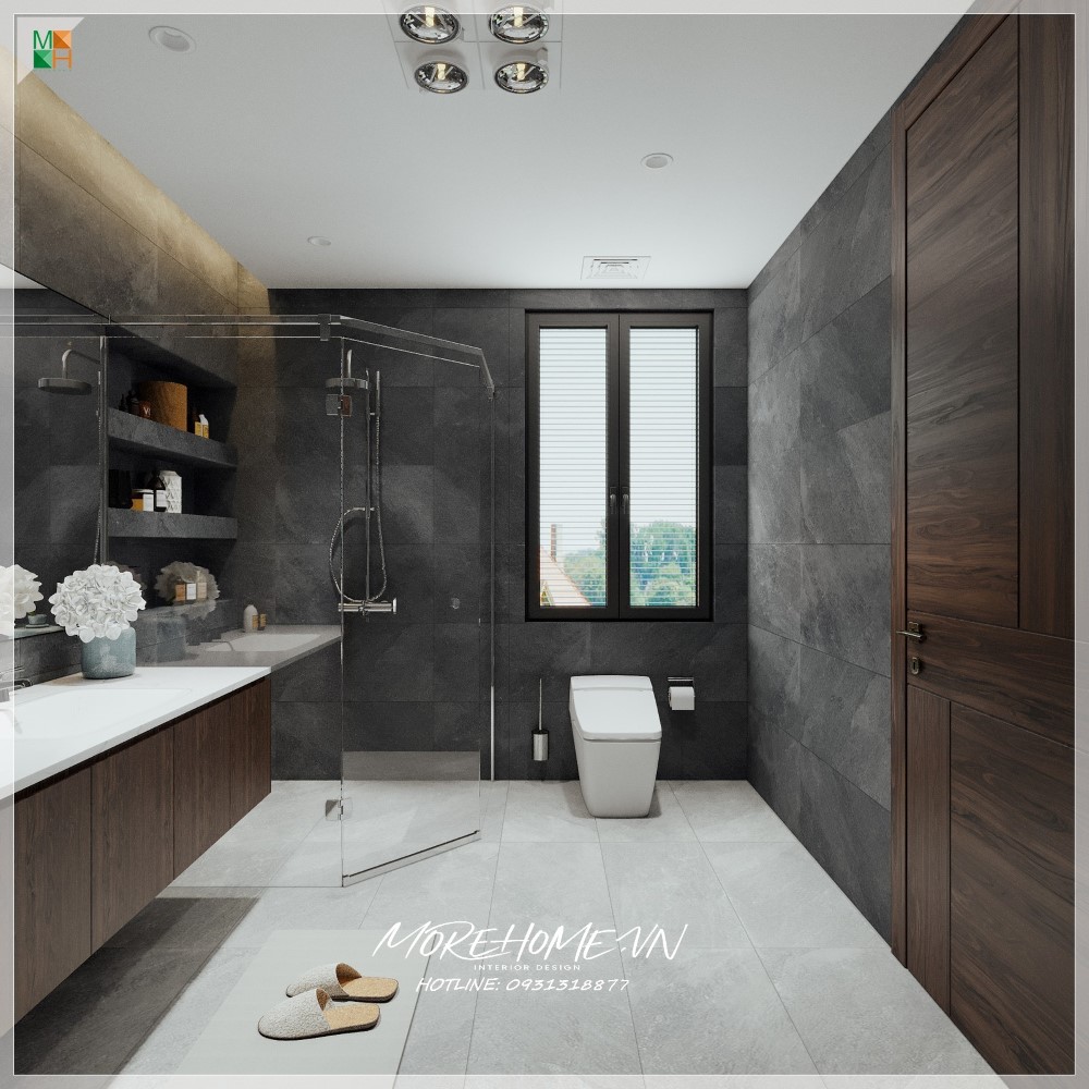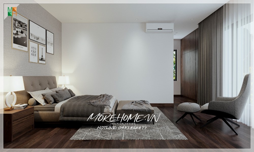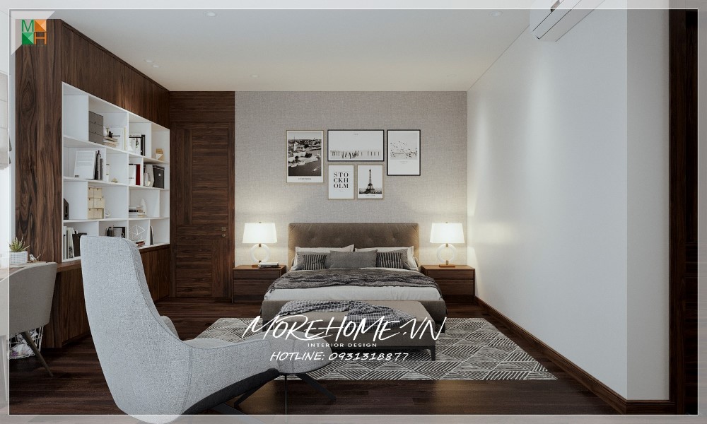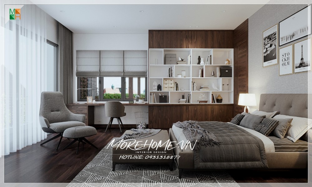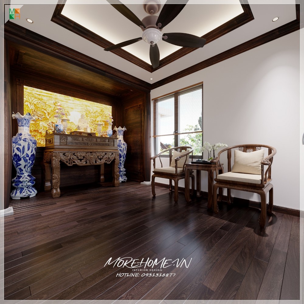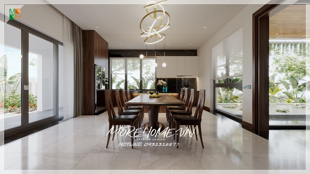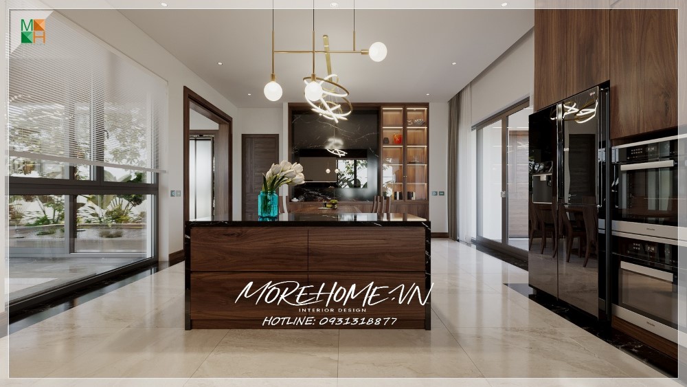 Thiết kế nội thất biệt thự Hà Tĩnh nổi bật gỗ óc chó sang trọng