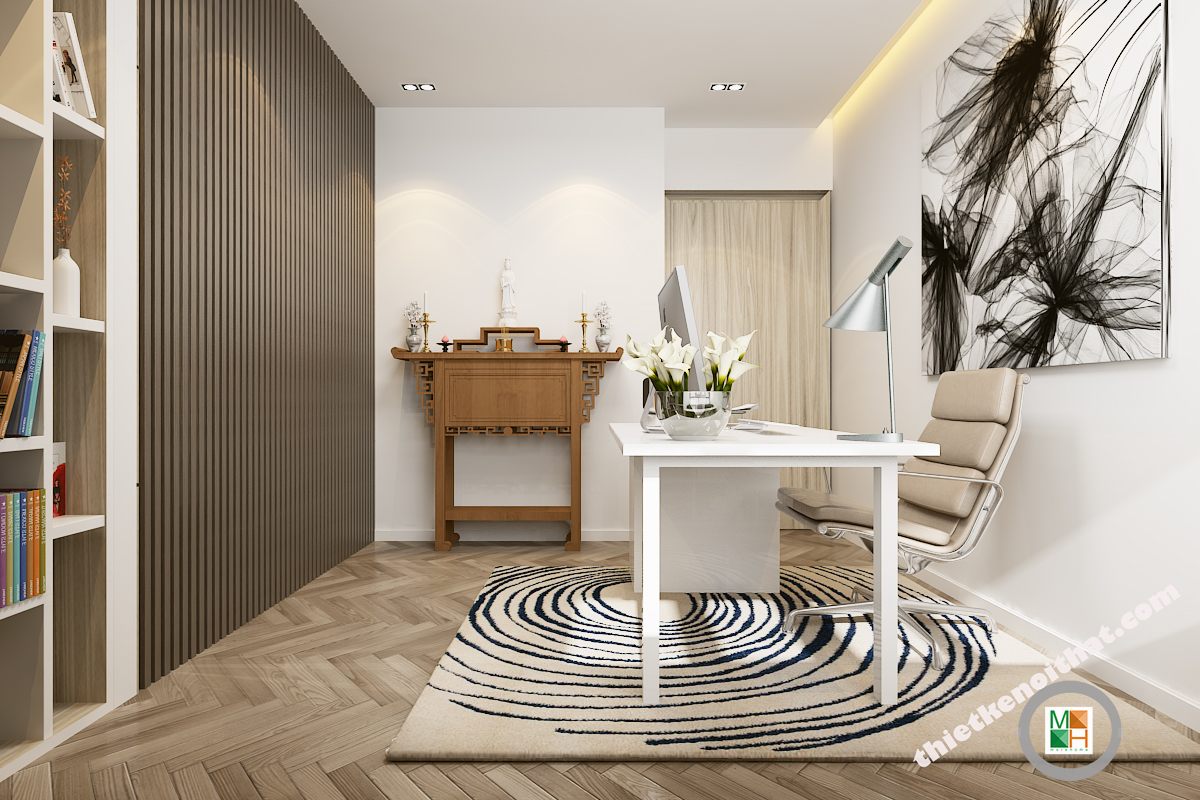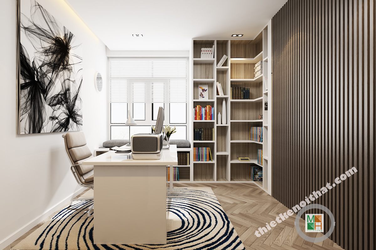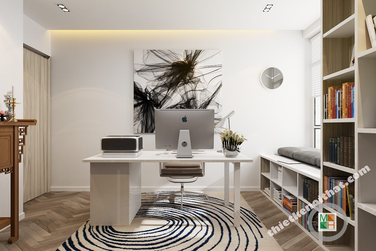 Phòng làm việc với thiết kế đơn giản, nhẹ nhàng song chúng lại góp phần tạo nên sự chỉn chu trong không gian sống của gia đình. Với cách sắp xếp các món đồ hợp lý góp phần tạo nên 1 góc làm việc ấn tượng, hiệu quả làm việc tăng cao.