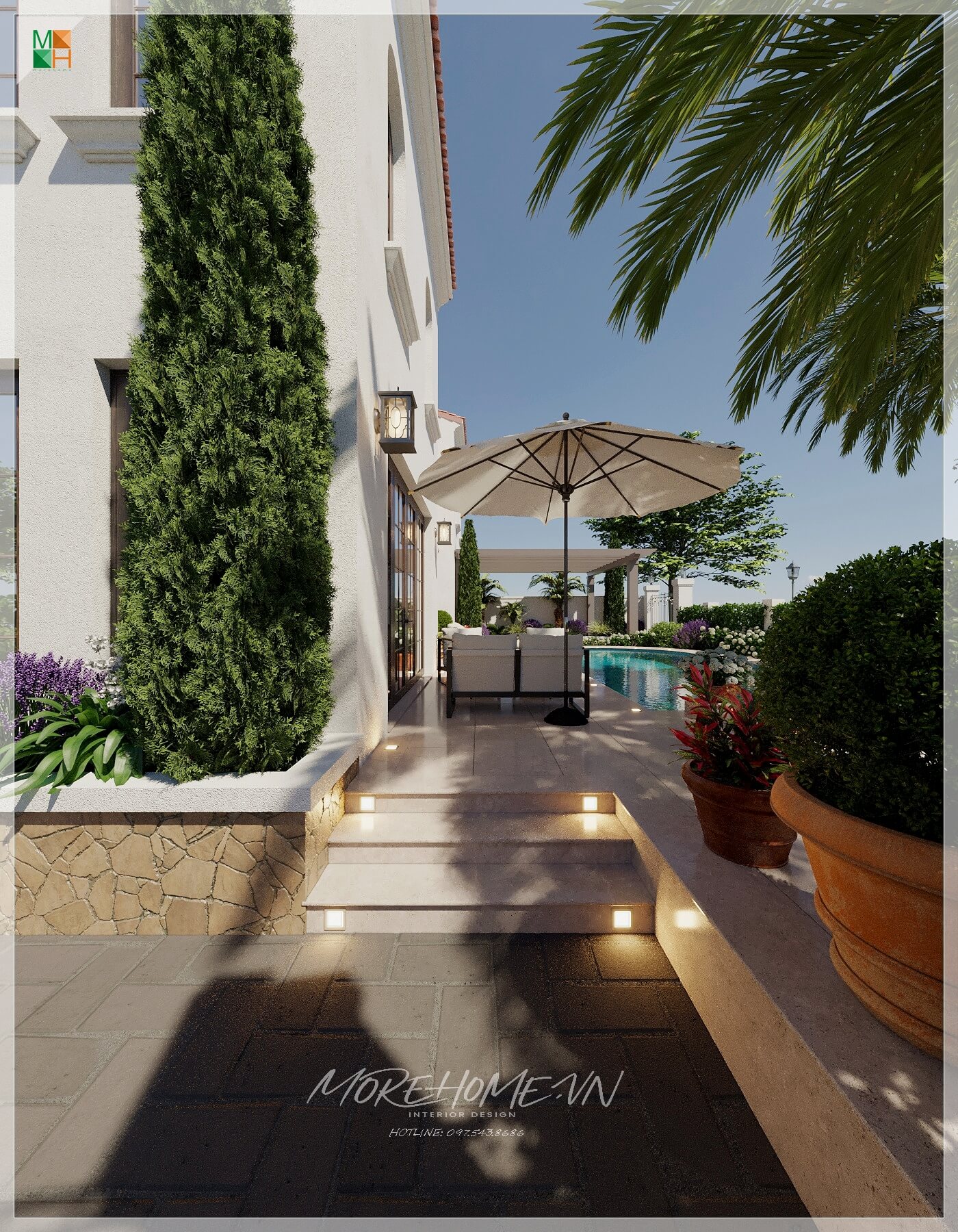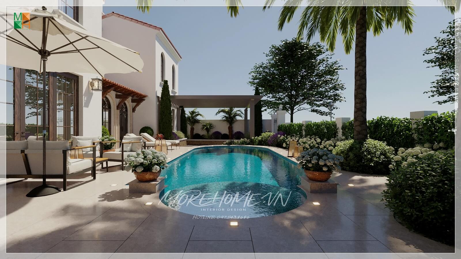 Bạn có nhu cầu thiết kế và thi công biệt thự vui lòng liên hệ MoreHome để được tư vấn.