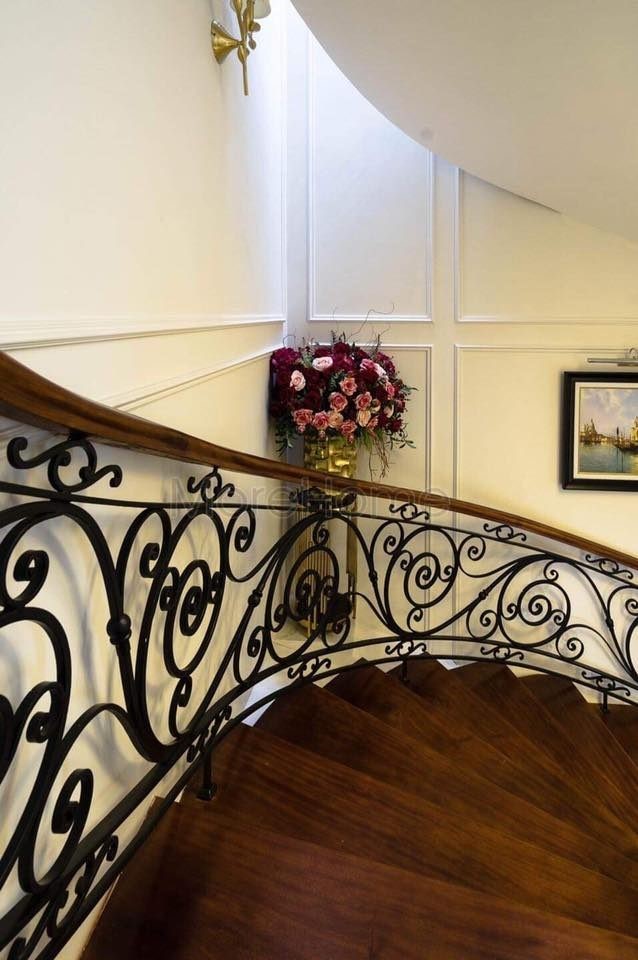 • Lan can tay vịn được làm bằng gỗ lim nam phi, sắt hoặc kính với tay tròn đường kính 65mm uốn cong theo thiết kế của cầu thang tròn để tạo nên sự đồng nhất.