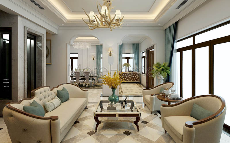 Thiết kế nội thất phòng khách phong cách tân cổ điển.