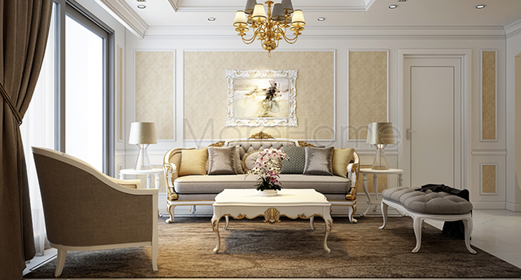 Thiết kế nội thất tân cổ điển đẹp với gam vàng chủ đạo