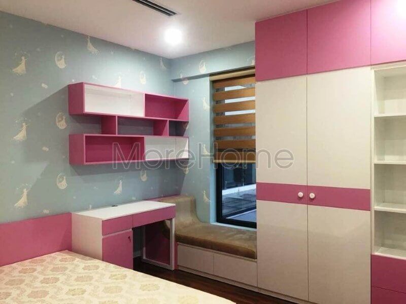 Việc thi công đồ gỗ công nghiệp cho phòng ngủ trẻ em tại căn hộ chung cư Imperia Garden Hà Nội đang được thực hiện.