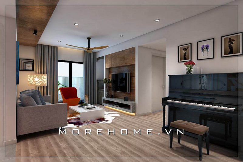 Mẫu trang trí nội thất đẹp cho phòng khách của căn hộ chung cư hiện đại.