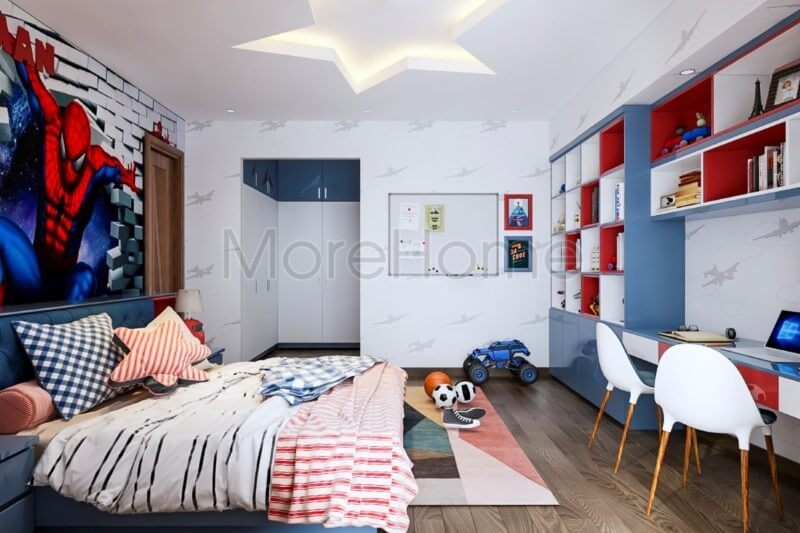 .Để làm cho phòng ngủ của bé trai trở nên đầy ấn tượng, việc dán tranh lên tường sẽ tạo nên một điểm nhấn lôi cuốn.
