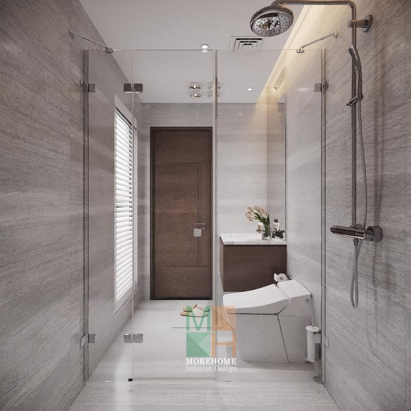 Vách tắm kính có góc 180 độ sẽ giúp ngăn chặn nước từ phòng tắm bị văng ra những khu vực khác trong phòng, giúp tránh tình trạng ướt át khó chịu.