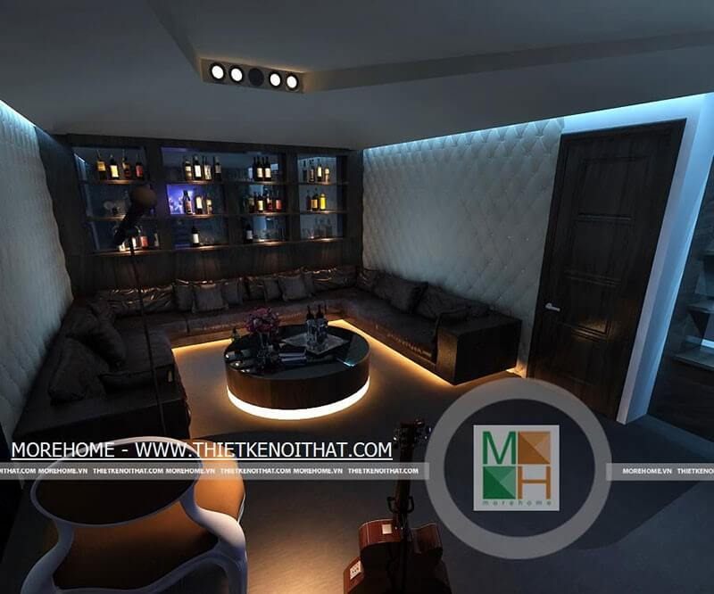 KTS đã chọn thiết kế một không gian karaoke riêng cho gia chủ với nội thất hiện đại và sang trọng để thỏa mãn sở thích của họ về niềm đam mê ca nhạc.