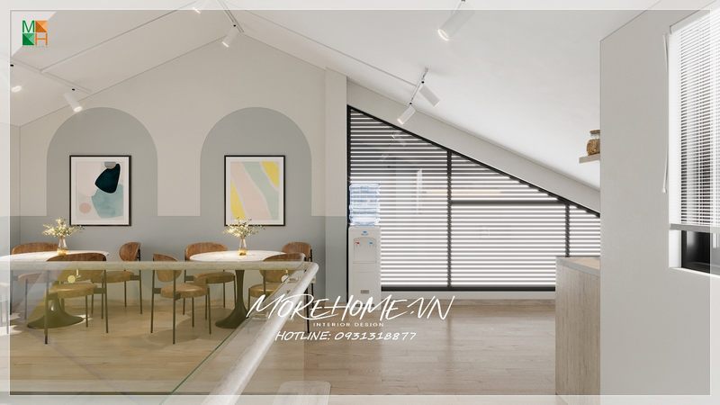 Các bức tranh canvas treo tường giúp thêm màu sắc chi tiết vào không gian phòng ăn văn phòng, tạo nên sự năng động và đạt được thẩm mỹ cao.