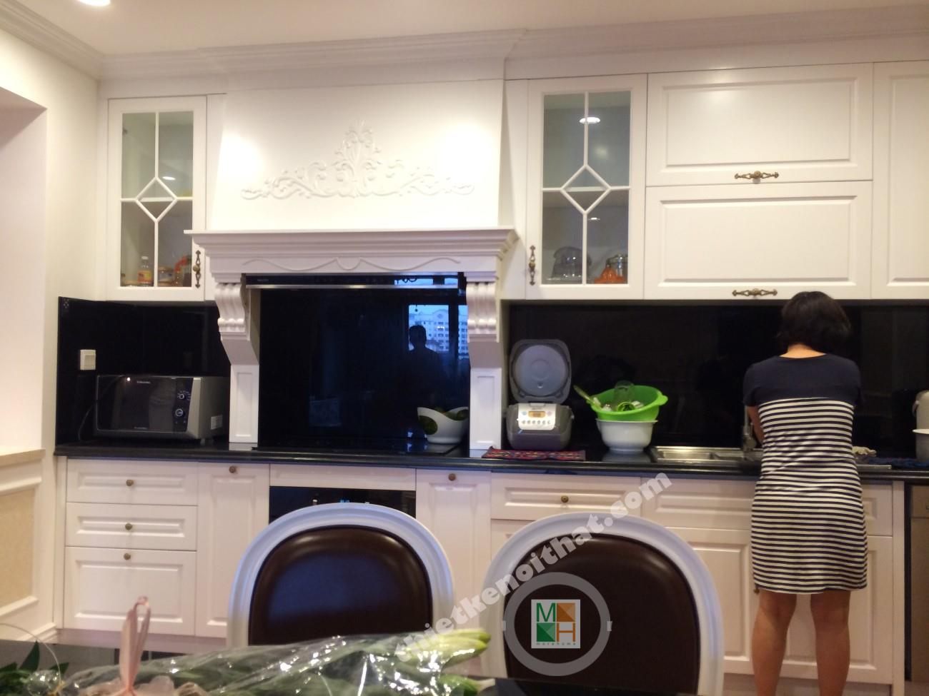 Tủ bếp gỗ tự nhiên phong cách tân cổ điển MH - 0014