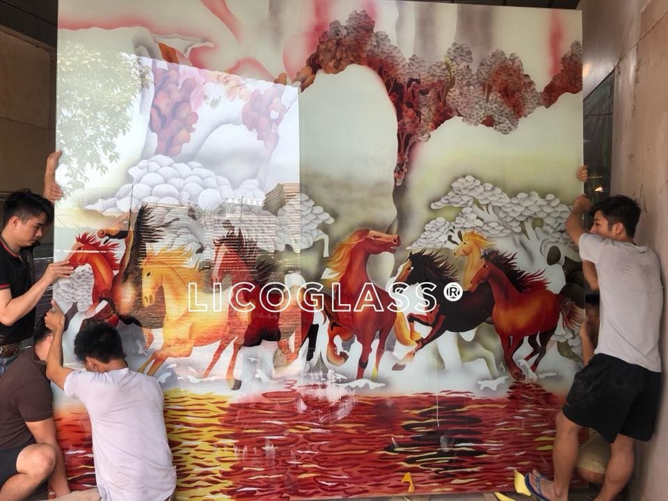 Tranh kính điêu khắc nghệ thuật bát mã