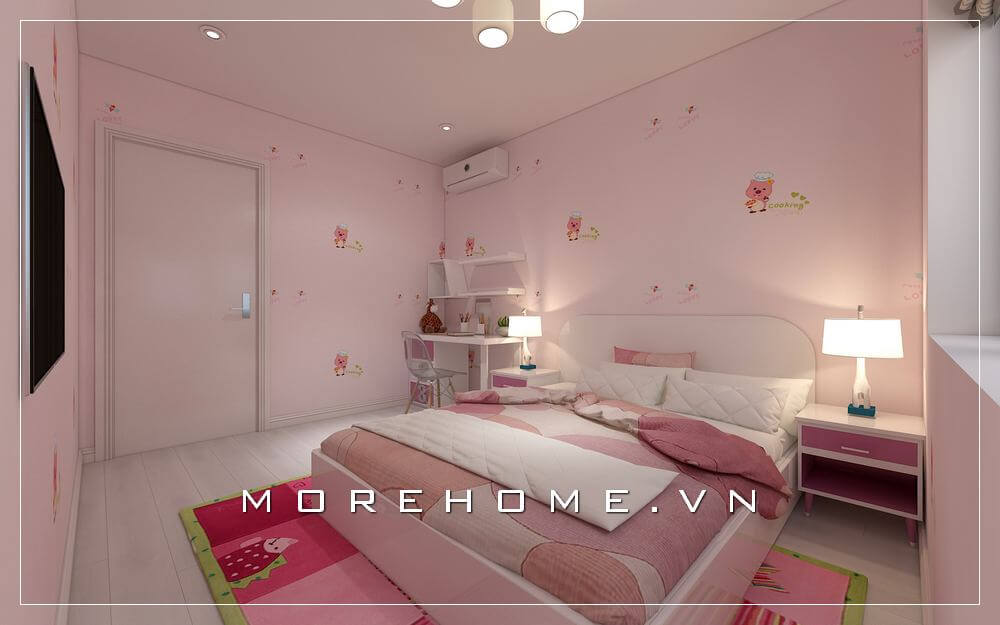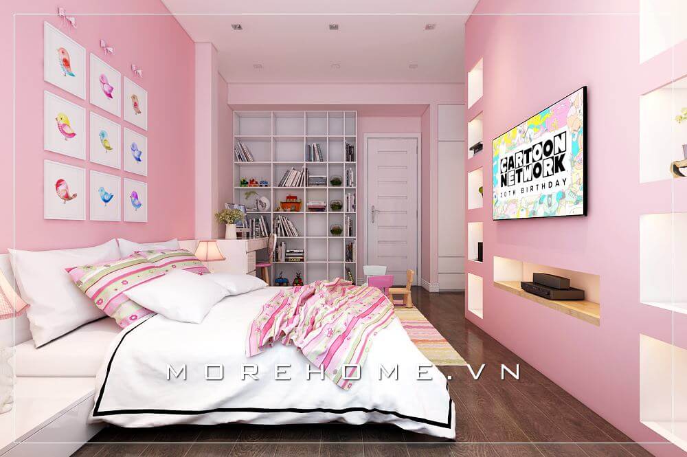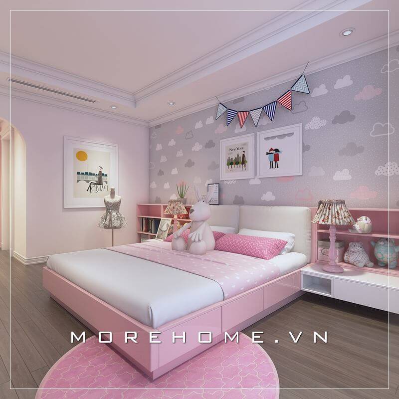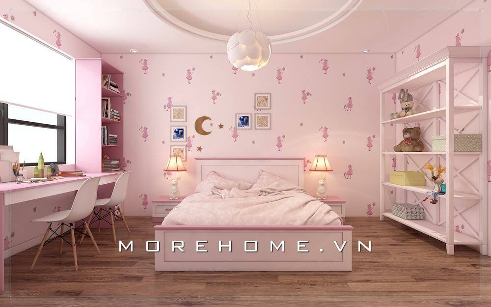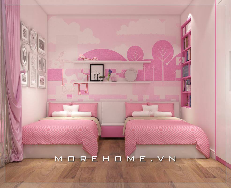 Trang trí nội thất phòng ngủ màu hồng đẹp dễ thương
